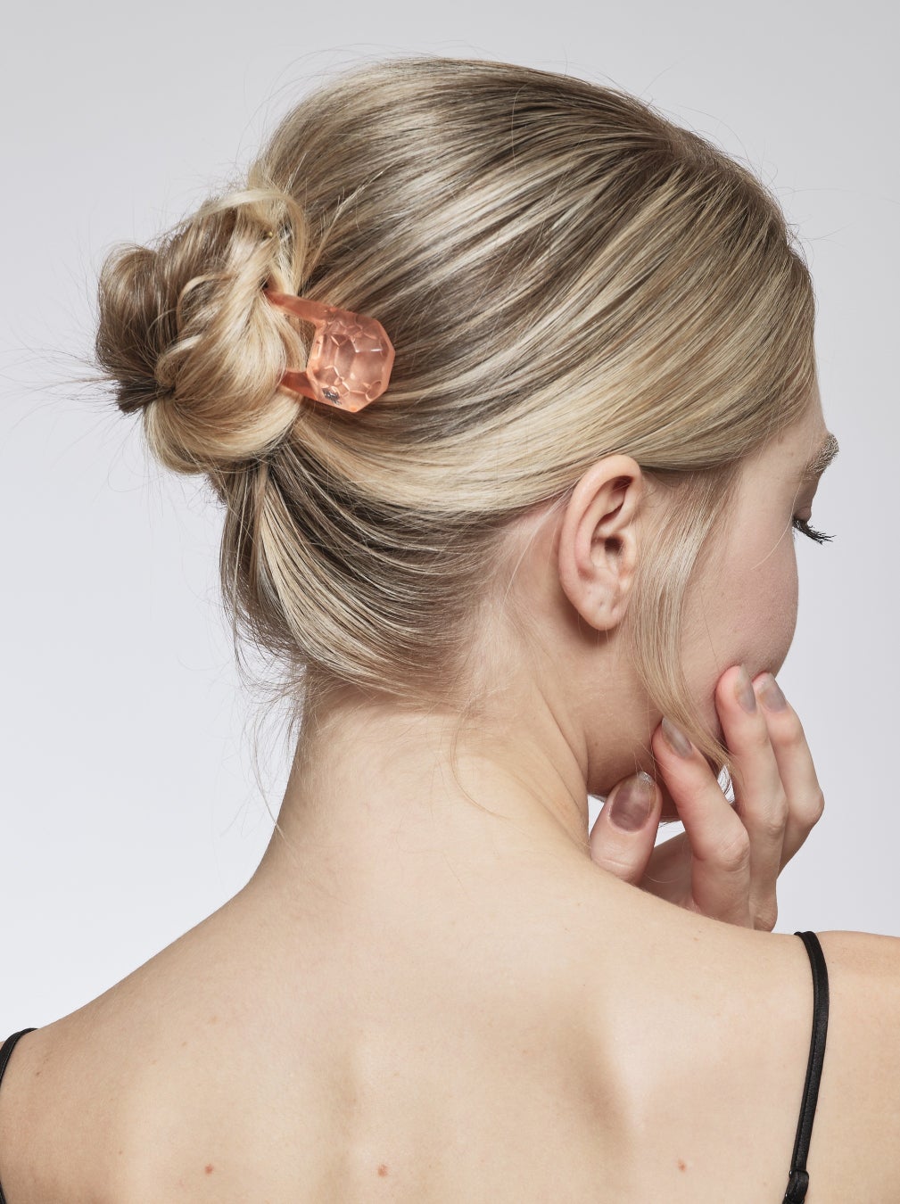 2025年7月9日(水)<THBT>からルーサイト素材のチャームにダイヤモンド風のカットを施したTHBTオリジナルポニーとUピンが登場。ポニーのオーナメントは小ぶりながら厚みもあり、どの角度から見てもアクリルの透明な輝きを楽しめるデザイン。内側にはパール状のラメがペインティングされ、さらに微妙なニュアンスをプラス。抑えたスモーキーカラーがシックで、大人のデイリースタイルを引き立てます。単品使いはもちろん、同シリーズのヘアピンとのコーディネイトもおすすめです。