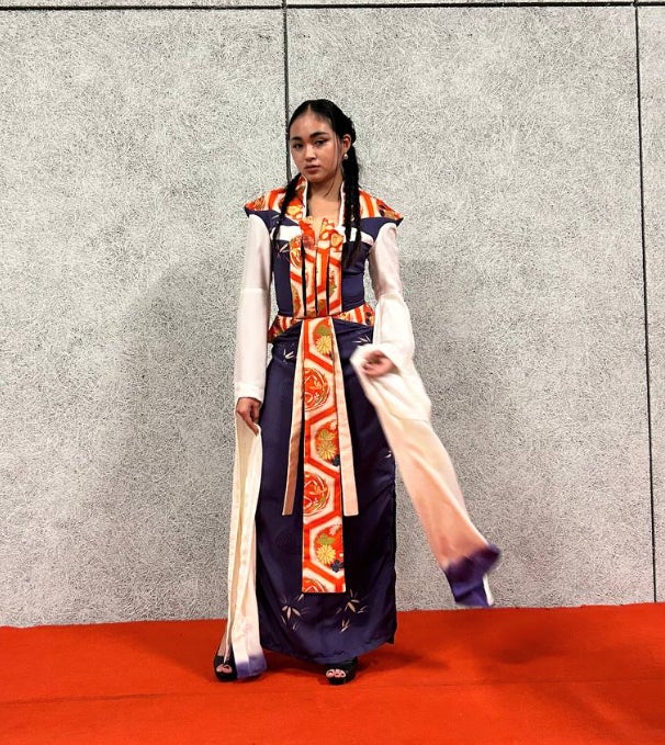 ~わずか1ヶ月の創作期間で生まれた、江戸の美とカンボジアの創造力が融合する新たなファッション。 廃棄(中古)着物を活用した、新たな価値創出の可能性を探る。〜
