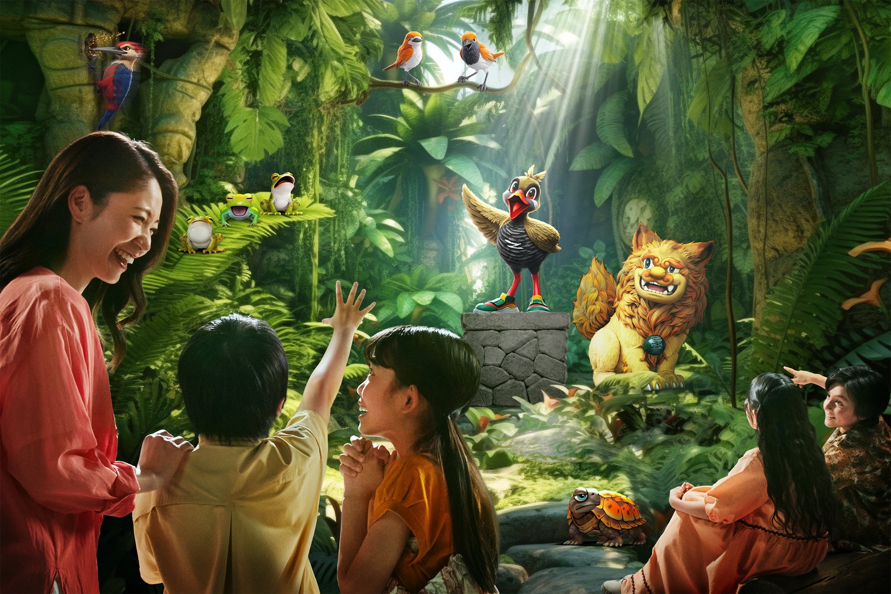 ジャングリア沖縄には、とびきり可愛い赤ちゃん恐竜たちに出会う「ファインディング ダイナソーズ」のほかにも、小さな子どもたちを含むご家族で楽しめるアトラクションが満載です。