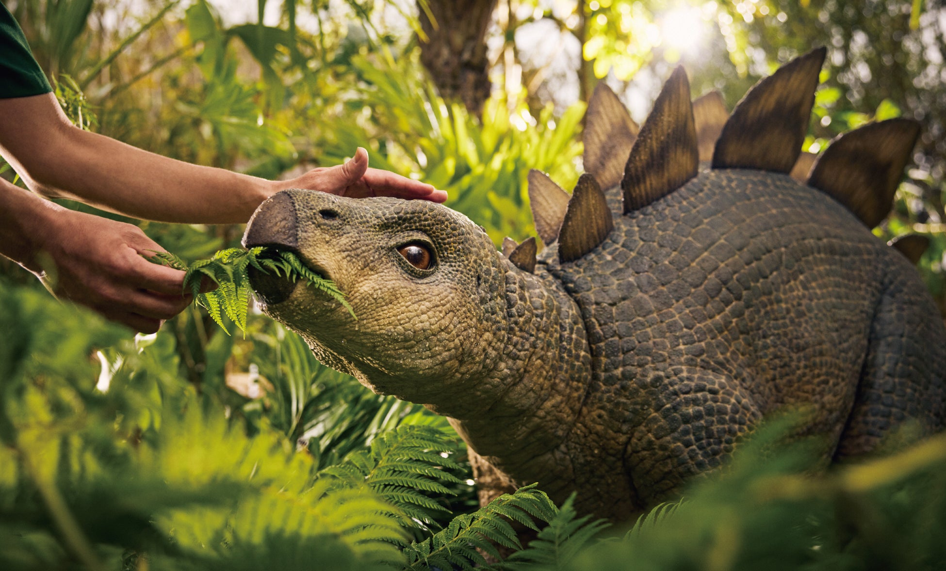 自らの足でジャングルを踏み分けながら、とびきり可愛い6頭の赤ちゃん恐竜と遭遇し触れ合います。ゴツゴツした足場の神秘的な洞窟や、木々生い茂るトンネルをくぐり抜け、ユラユラと揺れる吊り橋を 渡り、自身でトロッコを運転するなど大自然のなかを冒険します。