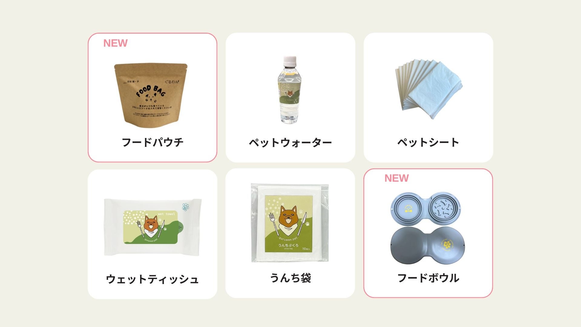 第一弾「ぐるわん防災BOX」では、ペットウォーター、フード、衛生用品といった必須アイテムをひとまとめにし、販売してきました。