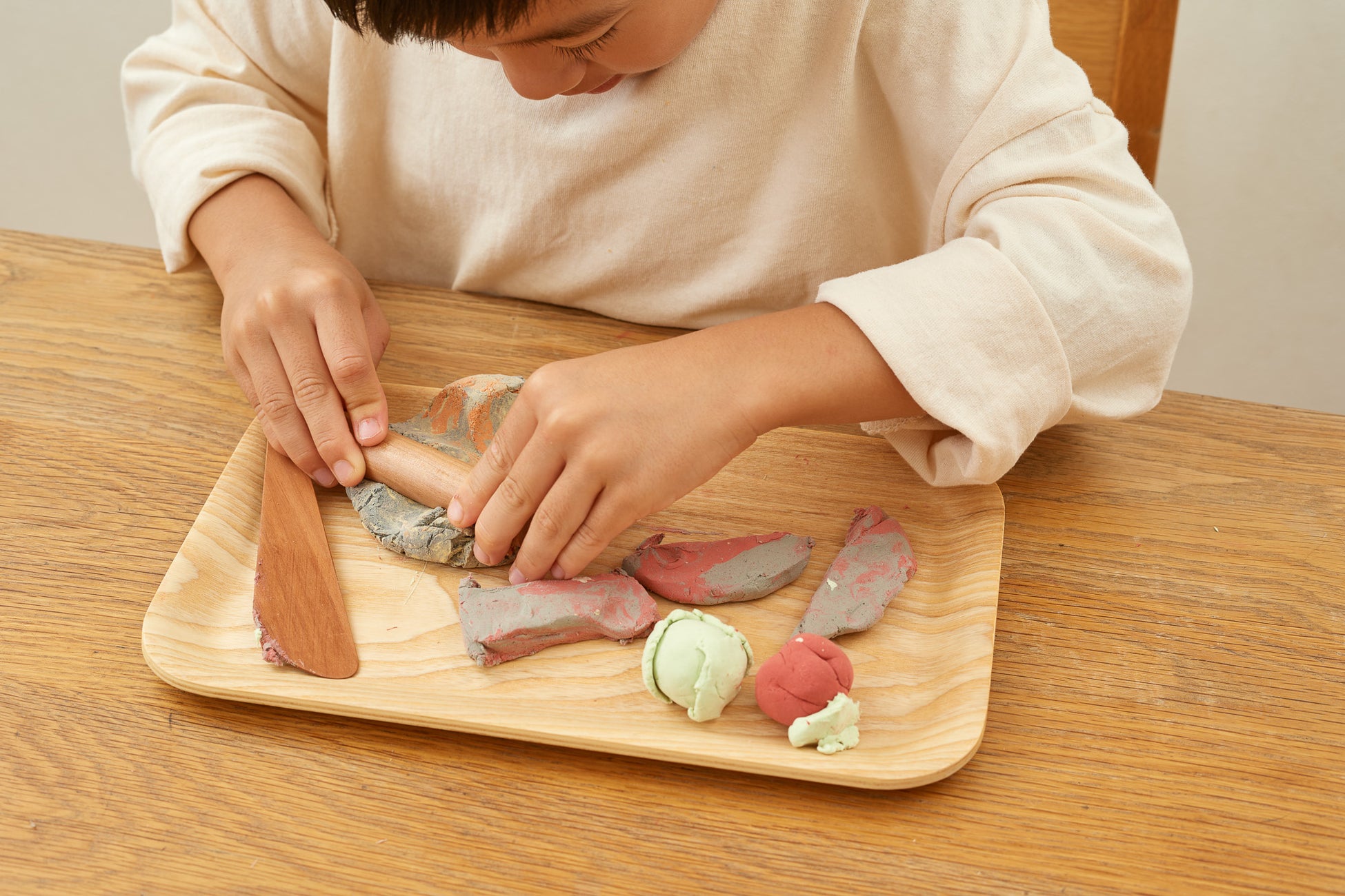 野菜本来の色を活かしたやさしい色合いが特長の「おやさいねんど®︎」は、軽くて柔らかいため、小さなお子様でも安心して遊ぶことができます。