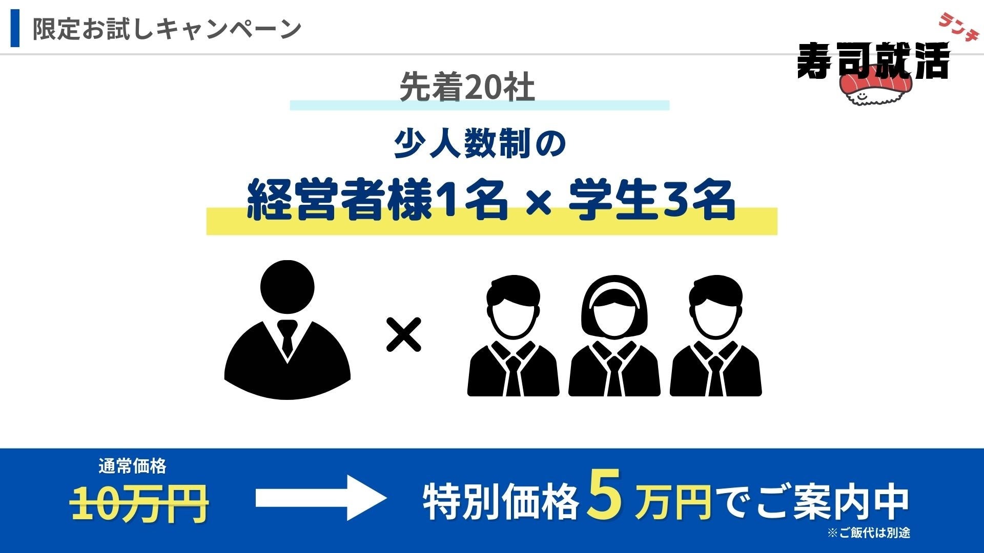 「寿司就活ランチ」で、貴社と優秀な学生との最適なマッチングを実現しませんか?