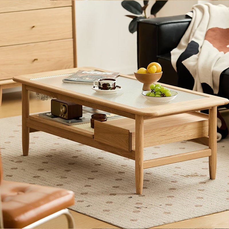 商品名:ホワイトオーク材 モールガラスラタンセンターテーブル
