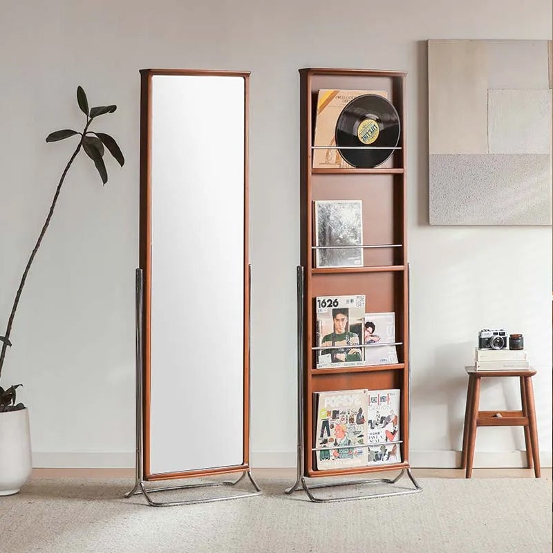 商品名:ツゲ材 収納機能付きスタンドミラー