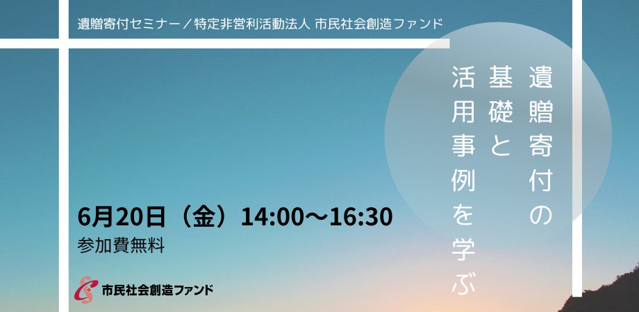 【遺贈寄付セミナー】市民社会創造ファンド、6月20日に開催