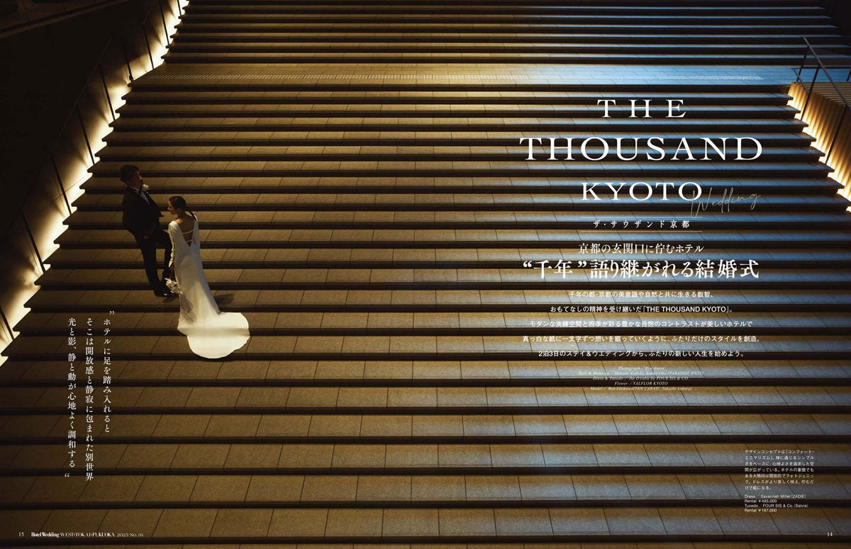 京都で唯一、2泊3日の特別なウェディングが叶うラグジュアリーホテル「ザ・サウザンド京都」を舞台にした、“千年、語り継がれる結婚式”をホテルウエディング専門誌で大特集