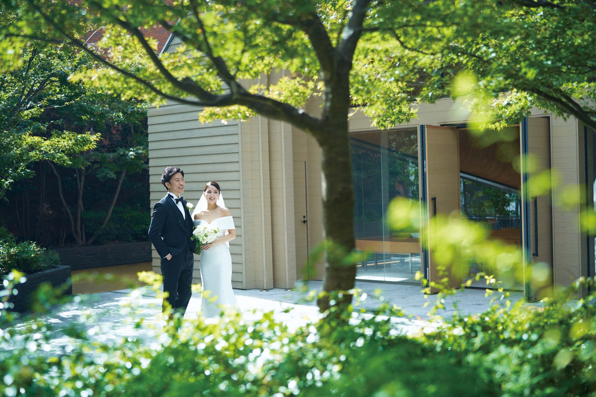 光や緑、風や水を感じられるガーデンに佇む水の音楽堂「KOMOREBIDO」での感動のセレモニー。