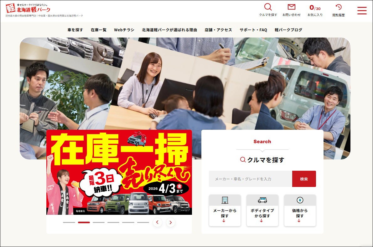 【年間1万台超の対応実績】北海道最大級の軽自動車専門店「北海道軽パーク」公式サイトを全面リニューアル― 最大30台比較機能と北海道特化コンテンツで、より選びやすい購入体験へ ―