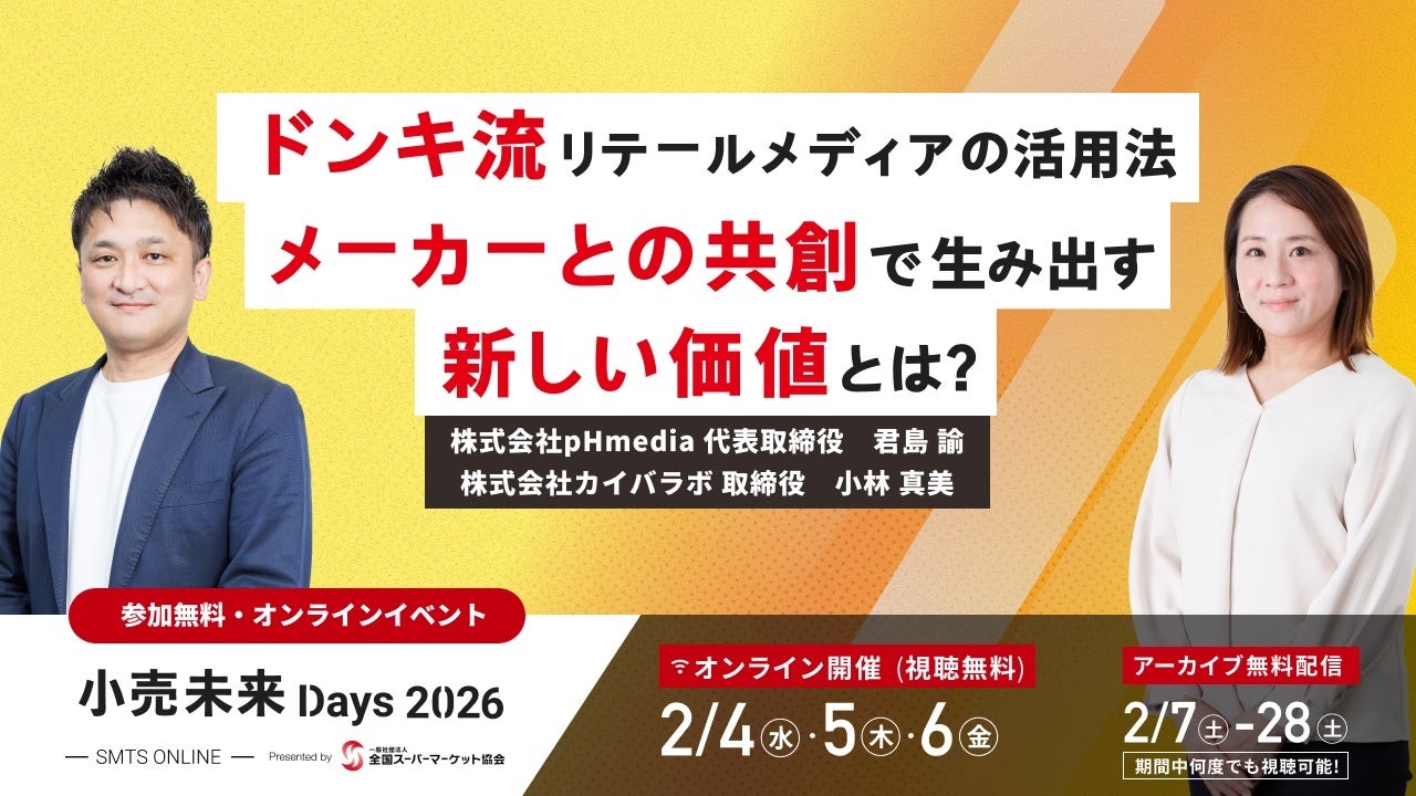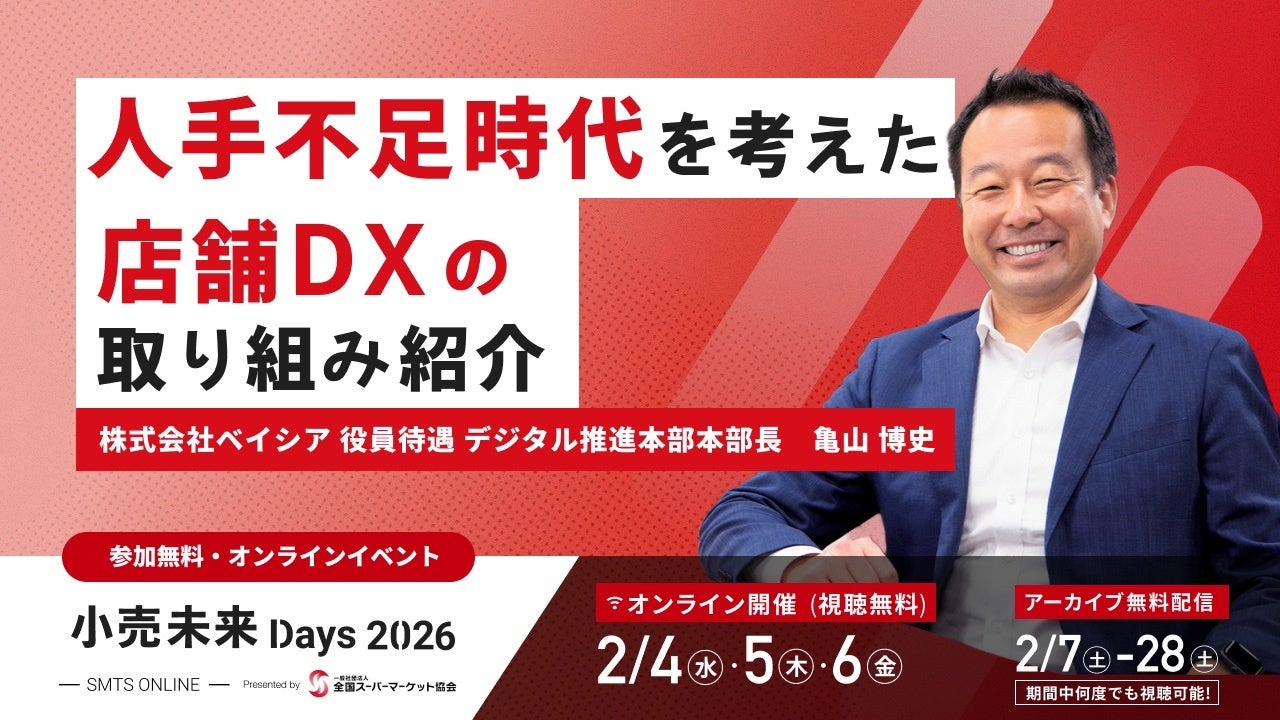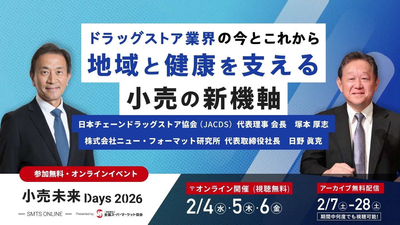 一般社団法人全国スーパーマーケット協会が主催、株式会社プロガイドが運営する特別オンラインイベント『小売未来Days2026』を2026年2月4日〜6日で開催します。