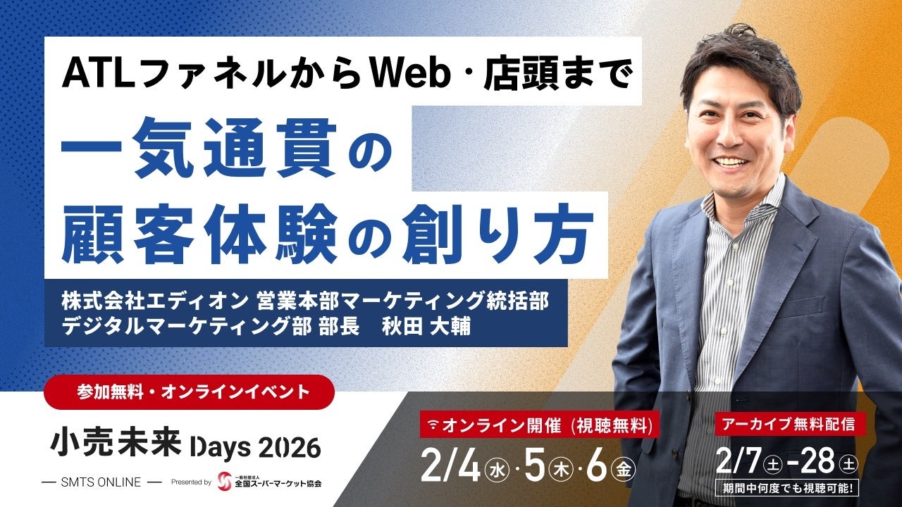 小売・流通業界のこれからの潮流とは?未来のヒントを学ぶ、全国スーパーマーケット協会主催「小売未来Days2026」が、2月4日〜6日の3日間でオンライン特別開催!