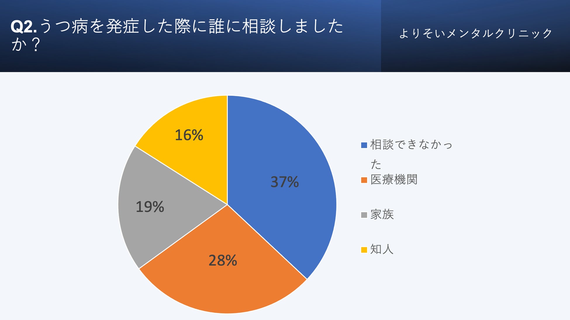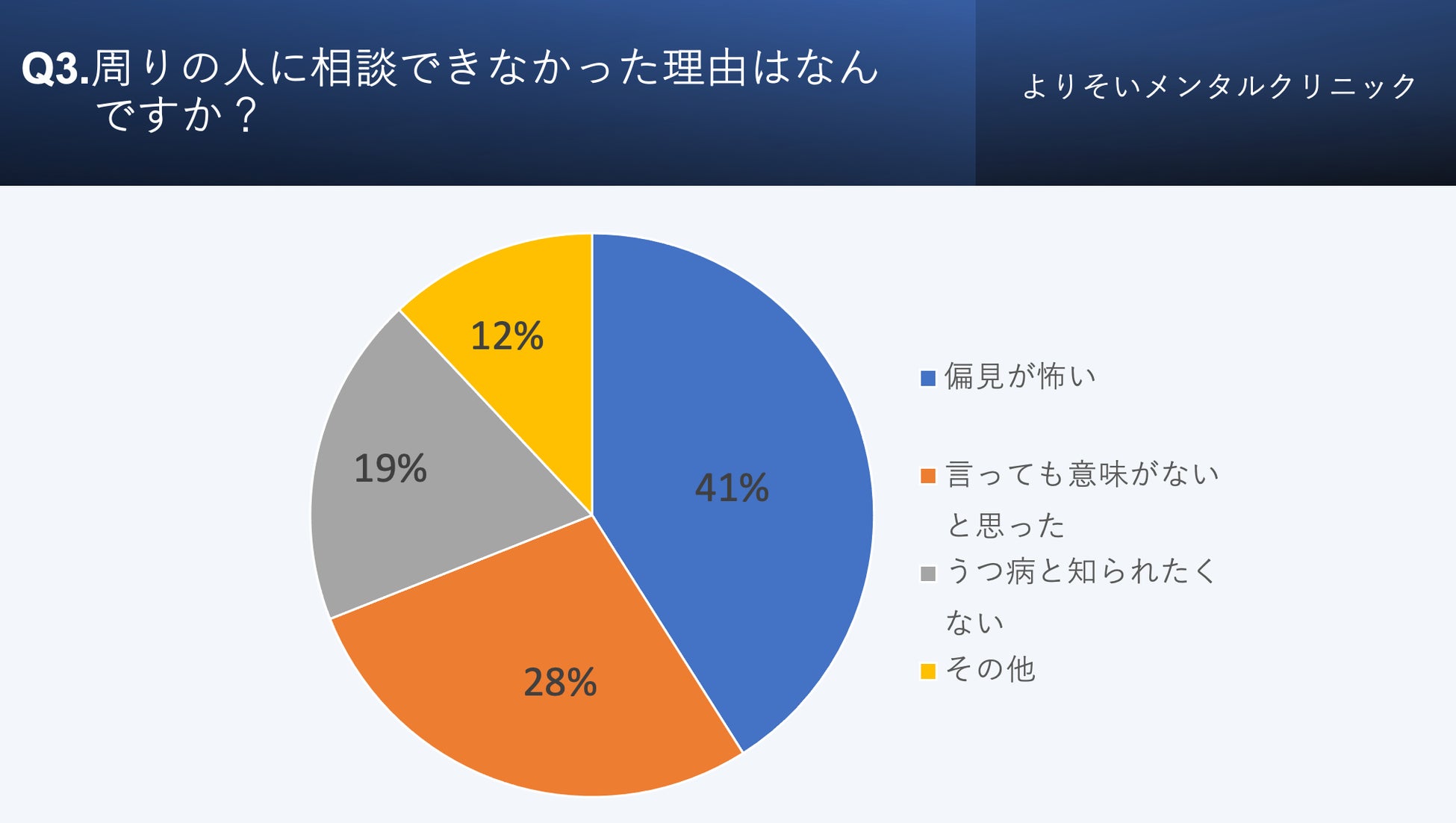 その結果、多くの方はうつ病を周りの方に相談できなかったと回答しました。