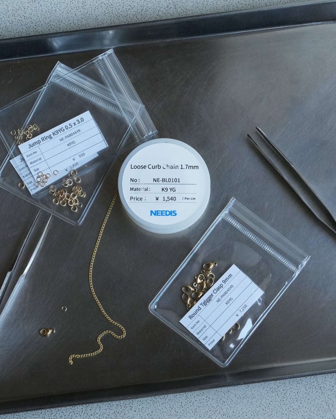 イギリス政府により1854年に正式に法制化された控えめで上品な色味と程よい硬度が魅力で、アンティークジュエリーやデイリージュエリーにも長愛されてきました。ロンドンやバーミンガムのジュエリーブランドでも、今なお“K9=British Made”の象徴として親しまれ、高価すぎずラフに着けられる日常使いのゴールドとして注目されています。NEEDIS代官山店舗では多数のゴールドチェーンをご用意しておりますが、「ゴールドを身につけたいけれど派手に見えるかも」という方も多くいらっしゃいます。そんな方にこそ、肌に自然に馴染むK9チェーンをおすすめいたします。