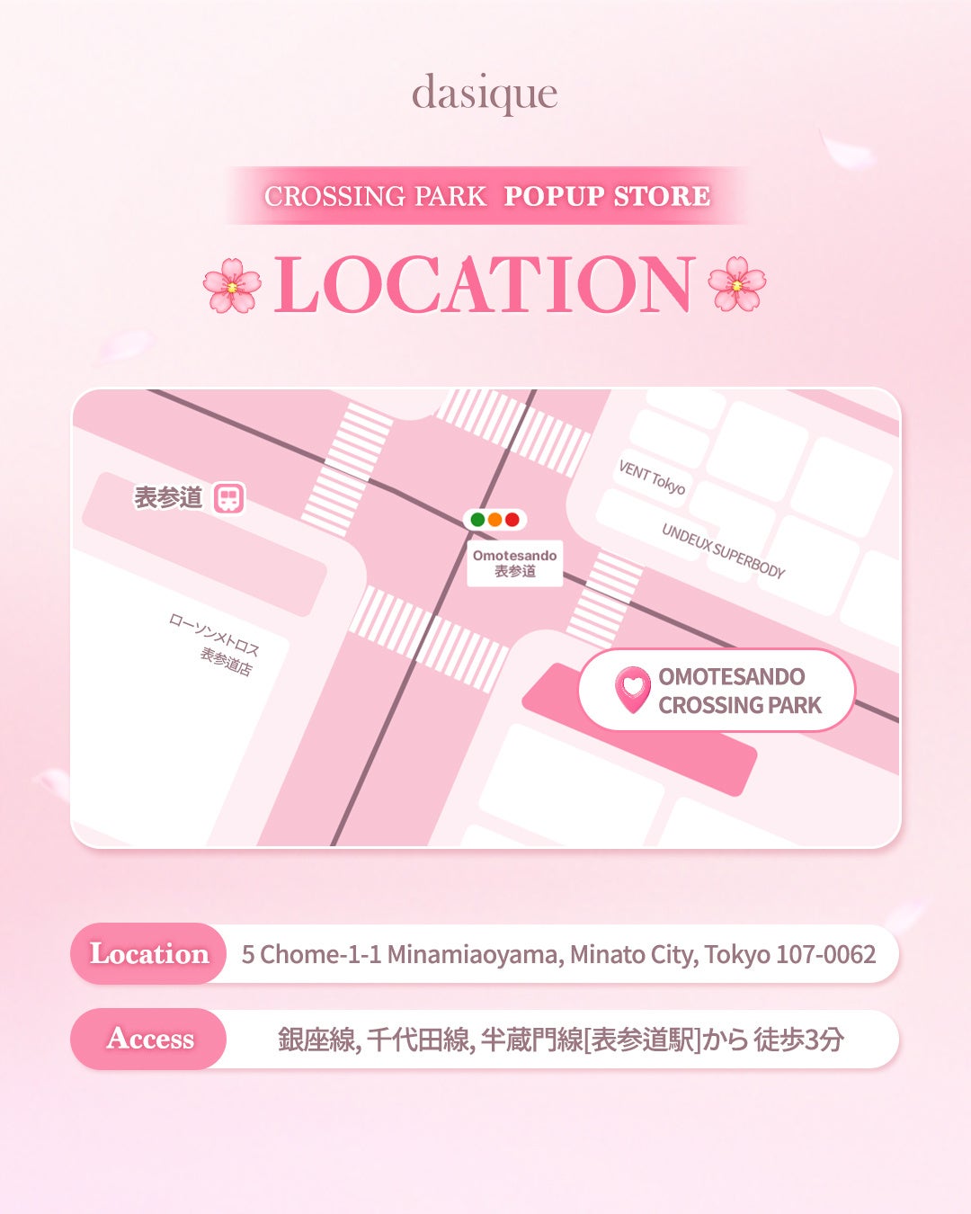 株式会社JTが取り扱う韓国コスメブランド「「dasique(デイジーク)」は、2月17日(月)より、春、桜の感性をそのまま詰め込んだコレクション「Pink Blossom」を新たに発売したことを記念したポップアップストア「dasique Pink Blossom」を3月6日(木)から30日(日)までの25日間、東京・表参道にあるOMOTESANDO CROSSING PARKにて開催しています。「dasique」らしい世界観を味わうため、多くの人が訪れ、賑わいを見せた初日の様子をお知らせいたします。