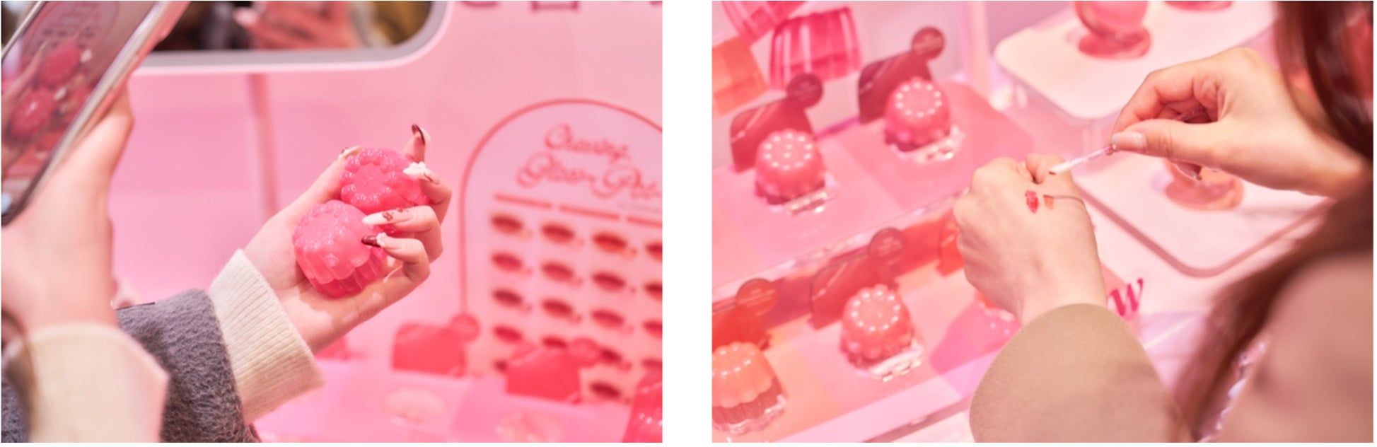 さらに、店内もやわらかなピンクの光に包まれた空間が広がり、2025年春限定「ピンクブロッサムコレクション」限定色や、日本初上陸の新作「プローカバーデュアルコンシーラーパレット」、「チューインググロウポット」など「dasique」のたくさんの商品が揃う夢のような空間が広がります。来場者は気になる商品をタッチアンドトライするなど、思い思いの楽しみ方で、「dasique」の春を余すことなく体感していました。