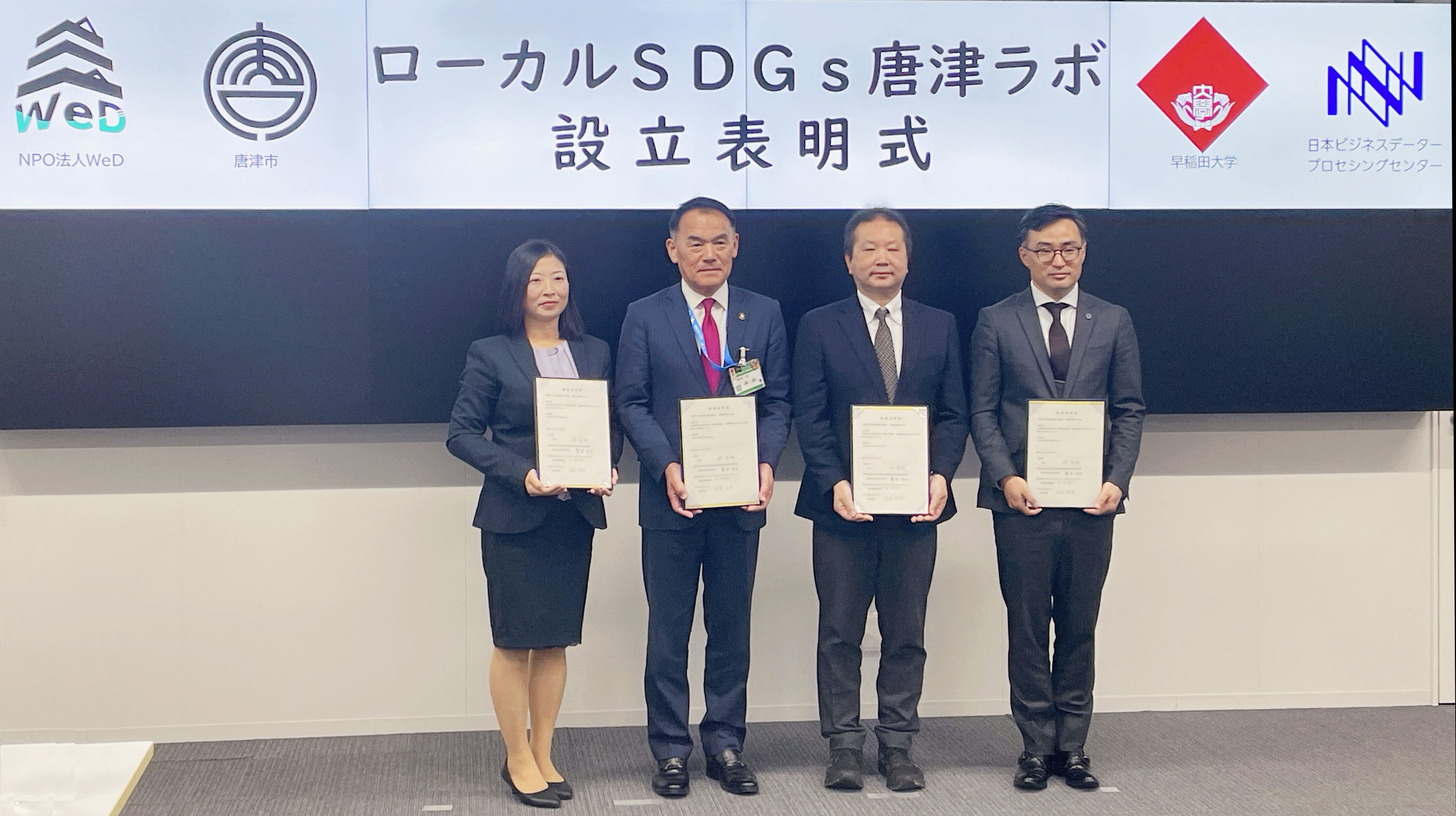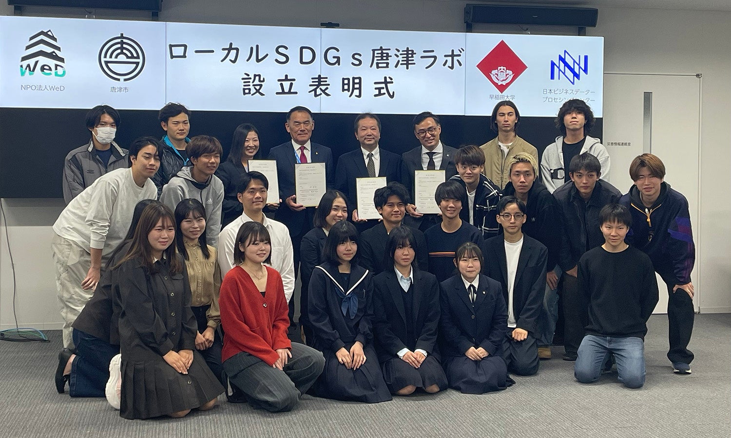 株式会社日本ビジネスデータープロセシングセンター(本社:兵庫県神戸市、代表取締役社長:池 智太郎、以下「日本データー」)は、2025年10月29日(水)、佐賀県唐津市にて開催された「唐津ラボ」設立表明式において、唐津市(市長:峰 達郎)、早稲田大学社会科学総合学術院先端社会科学研究所(所在地:東京都新宿区、所長:鷲津 明由、以下「早稲田大学」)、NPO法人WeD(所在地:佐賀県唐津市、代表理事:吉森 旭希、以下「WeD」)とともに参加表明書に署名し、設立団体の一員として「唐津ラボ」に参画いたしました。
