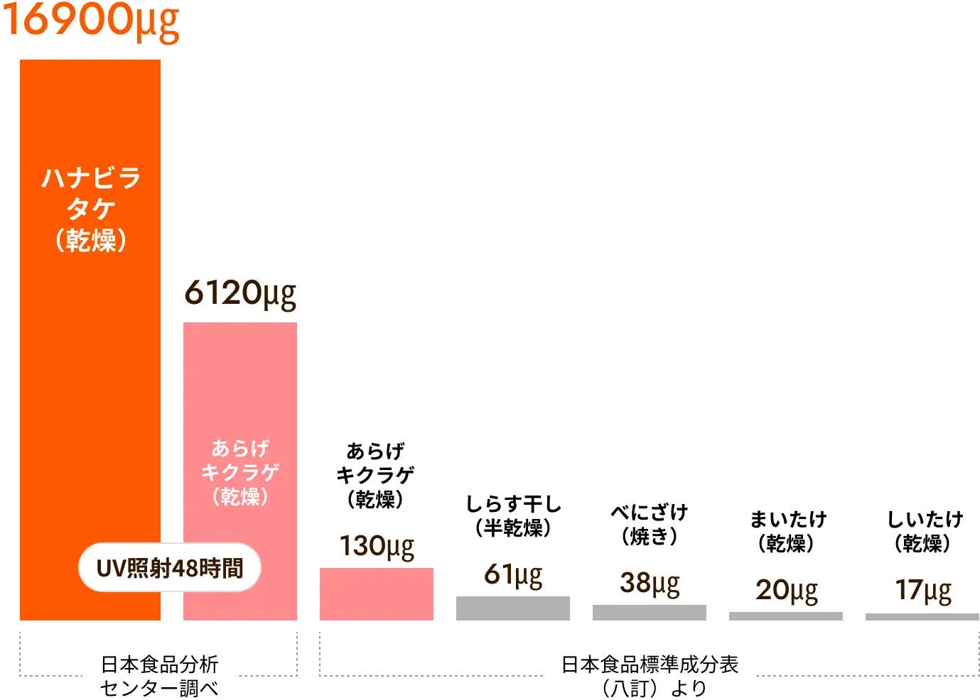 ― きのこの中でも突出した「ビタミンD」含有量 ―
