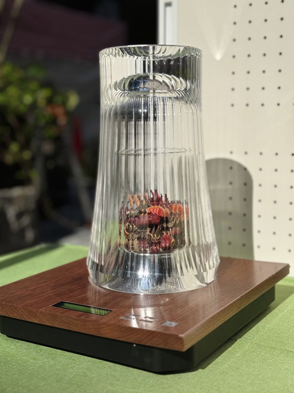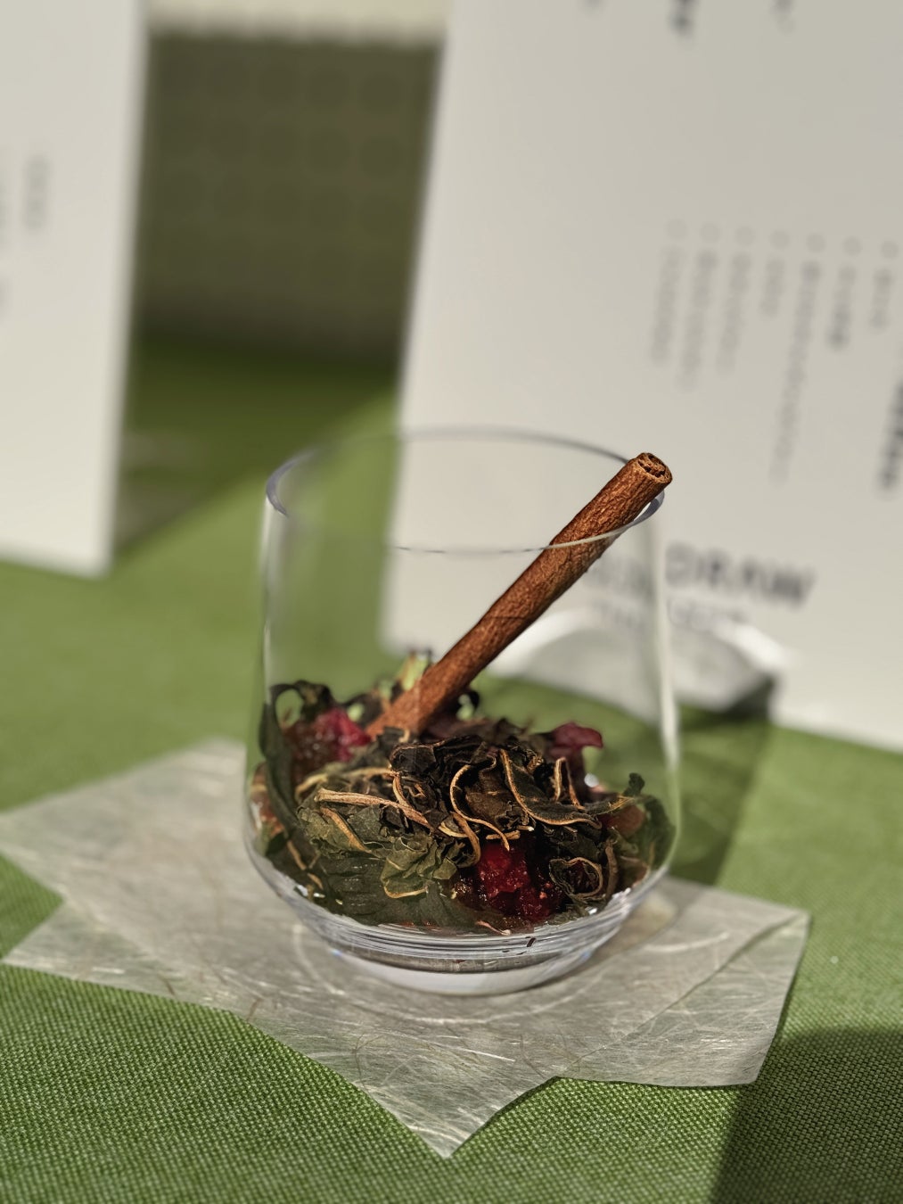 桜餅を思わせるやわらかな香りと、苺など春の果実の甘酸っぱさが絶妙に調和した一品。薄桃色の美しい水色とともに、心がほころぶような華やぎとリラックス感を提供します。