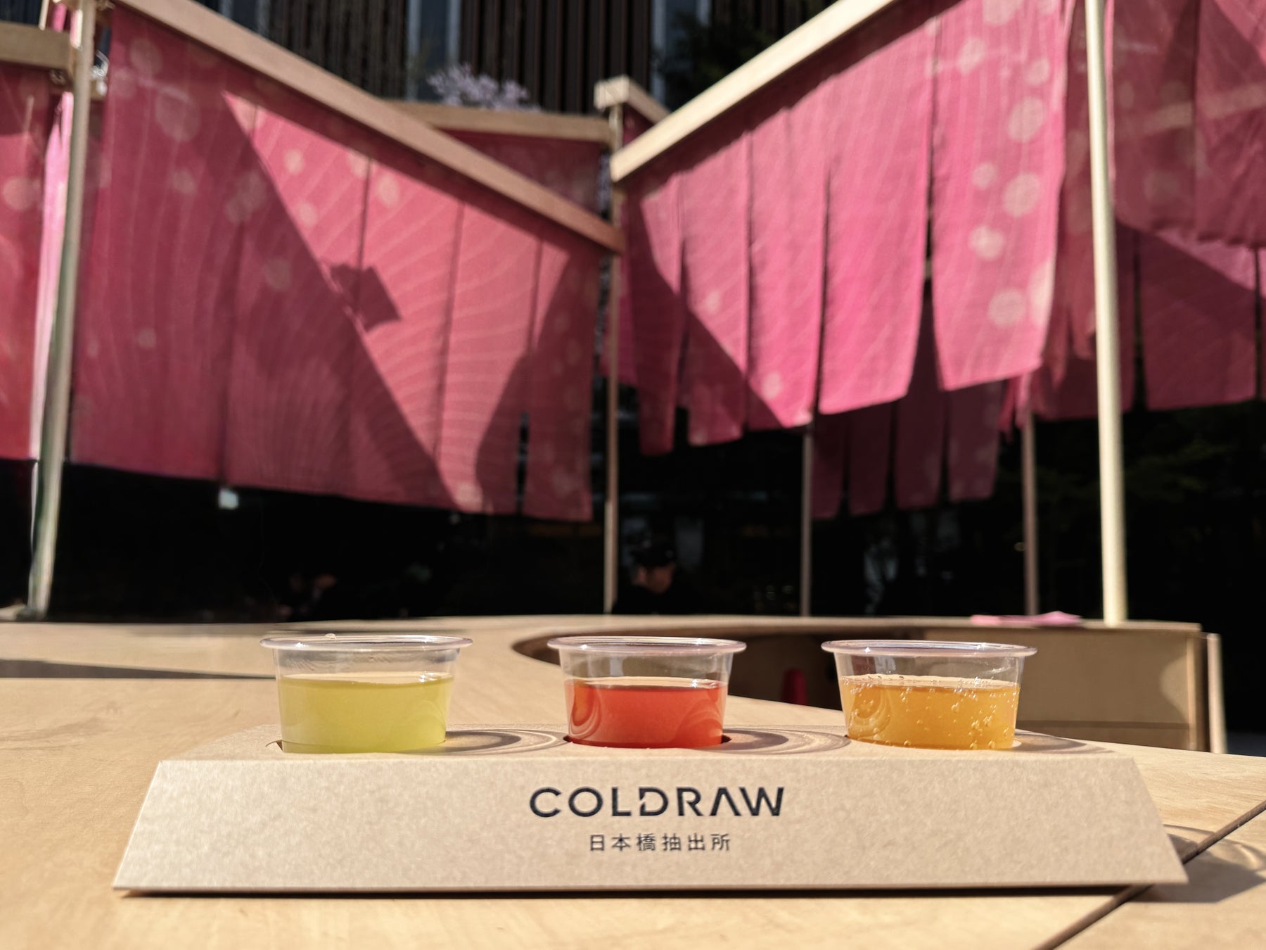 特許取得の独自技術を活かし、植物の恵みを凝縮した芳醇で華やかなプレミアムノンアルコール飲料を開発・提供することで、新たな飲食体験のムーブメント創出を目指すCOLDRAW株式会社(以下、COLDRAW)は、一般社団法人日本橋室町エリアマネジメントが開催したSAKURA FES NIHONBASHI 2025内で、3月29日(土)〜30日(日)にかけて2日間限定でCOLDRAWドリンクを販売しました。この限定出展に合わせ、春や桜をテーマにした2つのドリンクを新たに開発し、シグネチャードリンクの阿波柑と合わせて3種のフレーバーを販売しました。