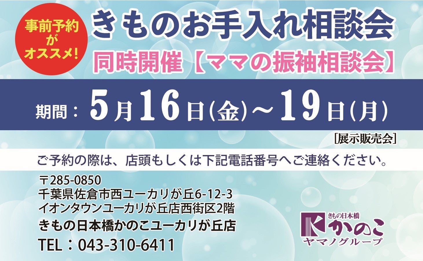 タンスに眠る着物のご相談「きものお手入れ相談会」(次回:5月16日~19日)
