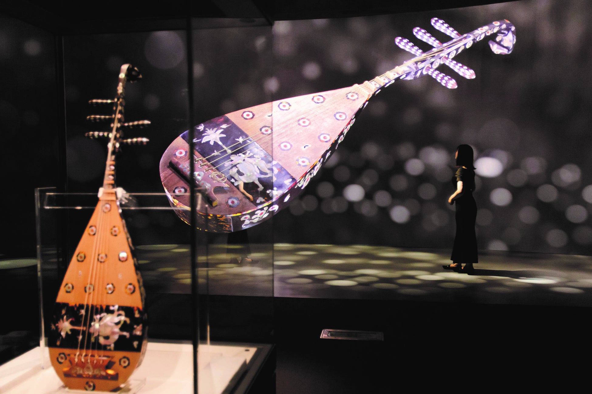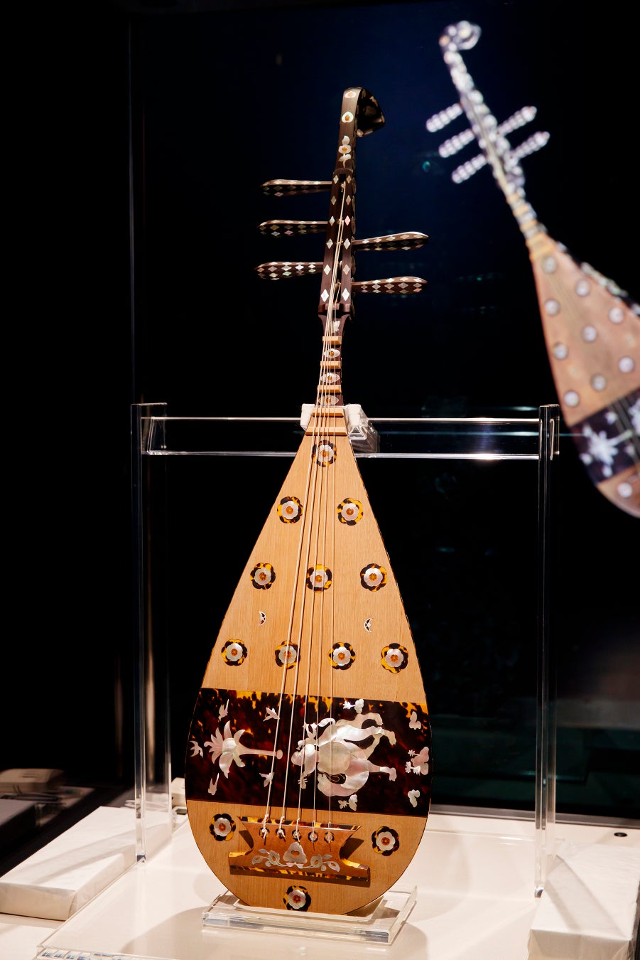 実際の宝物と同じ素材や技法を使い、1300年前の宝物本来の姿を再現した「再現模造」。それらを見ると、当時の宝物がいかに高度な技術を駆使し精緻に作られているかがよくわかります。本展では、「螺鈿紫檀五絃琵琶」や「螺鈿箱(らでんのはこ)」など有名な宝物の再現模造を展示。当時の宝物の輝きとともに、映像や解説を通じてその美の裏側や超絶技巧に迫ります。