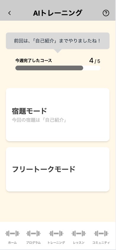 最初の「宿題モード」は、初回のアセスメントで、言語聴覚士との間でテーマを設定し使うことができます。例えば「自己紹介」を設定した場合、自己紹介に関連する話題がAIから次々と振られます。1日5〜10分の想定です(上限は10分/1日)。その一方、「フリートークモード」も搭載しており、これは20分まで、自由なトピックスで会話ができます。