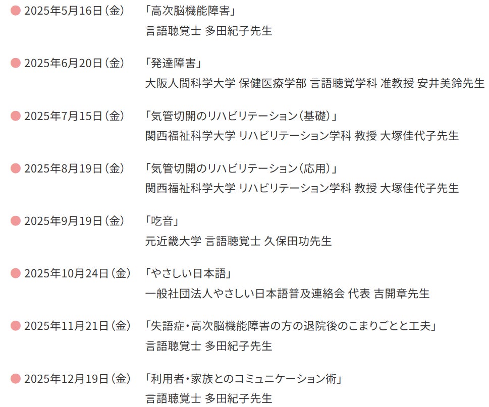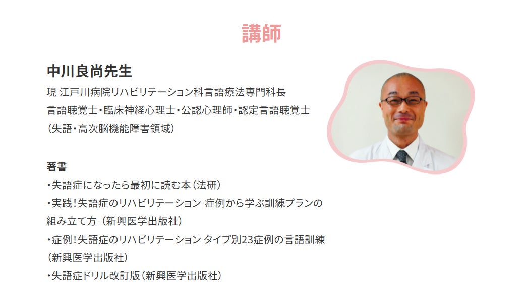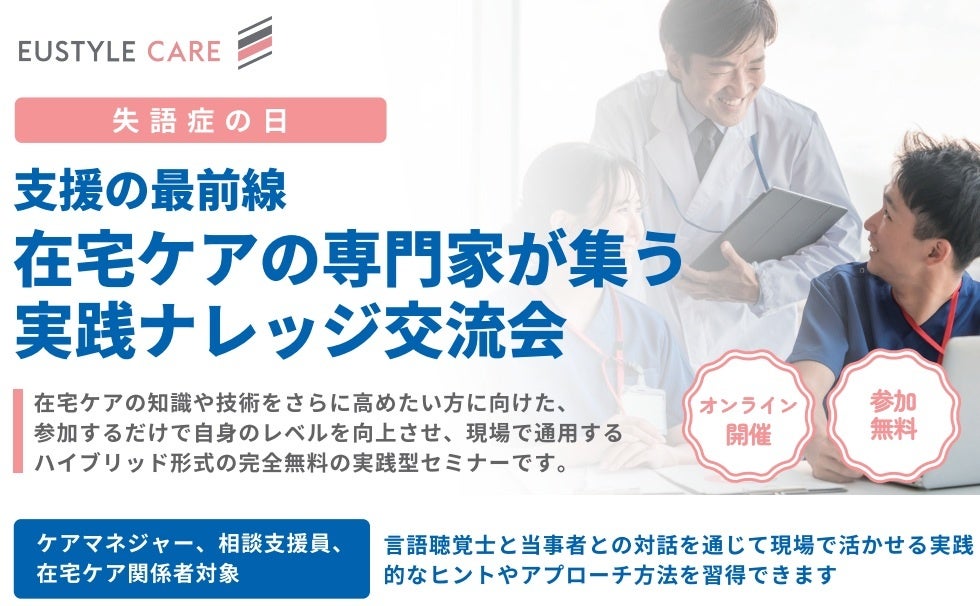 4月25日の「失語症の日」をきっかけとして、4月25日(金)、26日(土)、27日(日)に失語症者やご家族、支援職を繋ぐイベント「失語症の日イベント」を国内最大規模となる全国17会場で同時開催するほか、言語聴覚士不足によるリハビリ問題をAIで解決する国内初のAI実装アプリ開発に向けたクラウドファンディングを開始します。なお、医療福祉従事者を対象とした、失語症やコミュニケーション障害と支援がテーマのオンラインセミナー「在宅医療とケアを繋ぐユースタイルケア勉強会」は2025年1月から12月まで毎月開催しており、現在毎回500名以上の申込をいただいています。