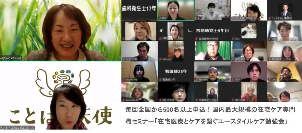 ことばの天使とユースタイルラボラトリーは、年間を通じて言語聴覚士の支援スキルの要素を、訪問看護師、介護士、作業療法士といった他の専門職や若手言語聴覚士に伝えることを目的に、オンラインセミナー「在宅医療とケアを繋ぐユースタイル勉強会」を企画しました。