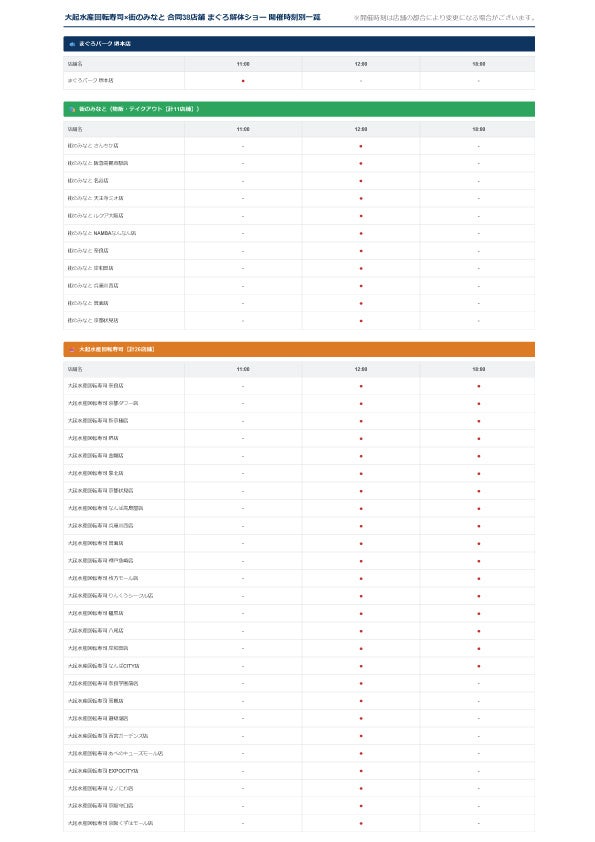 開催時間: 実施時間は店舗により異なります。詳細は後の開催店舗一覧画像、又は添付のPDFをご確認下さい。