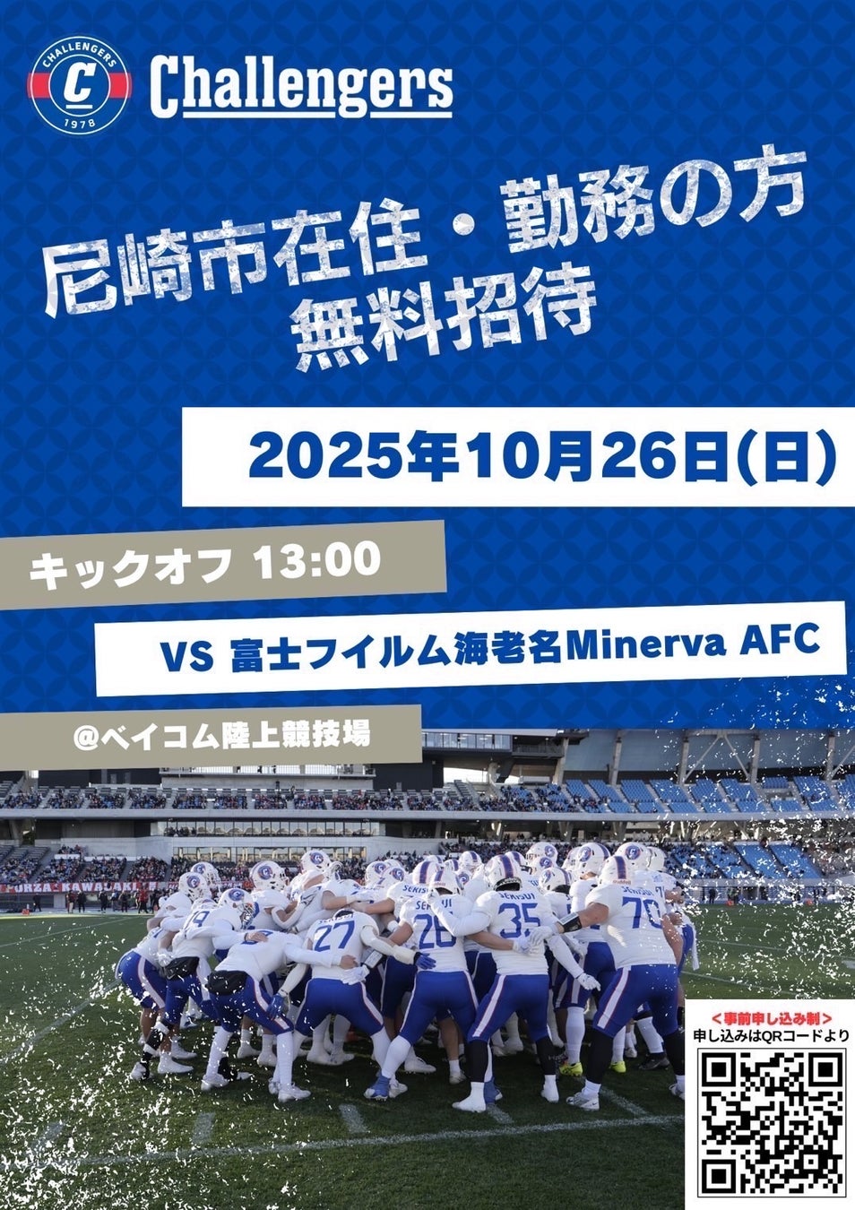 SEKISUIチャレンジャーズ(運営法人:一般社団法人Challengers Football Club、所在地:兵庫県尼崎市、代表理事:鍜次 茂、以下:チャレンジャーズ)2025年10月26日(日)、ベイコム陸上競技場にて行われる SEKISUIチャレンジャーズ vs 富士フィルム海老名ミネルヴァAFC(X1 SUPERリーグ第4節) を、兵庫県の女子プロバレーボールチーム ヴィクトリーナ姫路 とコラボレーションする「兵庫県民応援デー」として実施いたします。地元の皆さまを無料ご招待(通常チケット価格1800円)し、アメリカンフットボールとバレーボールという異なるスポーツがタッグを組んで、地域のスポーツ盛り上げを図ります。