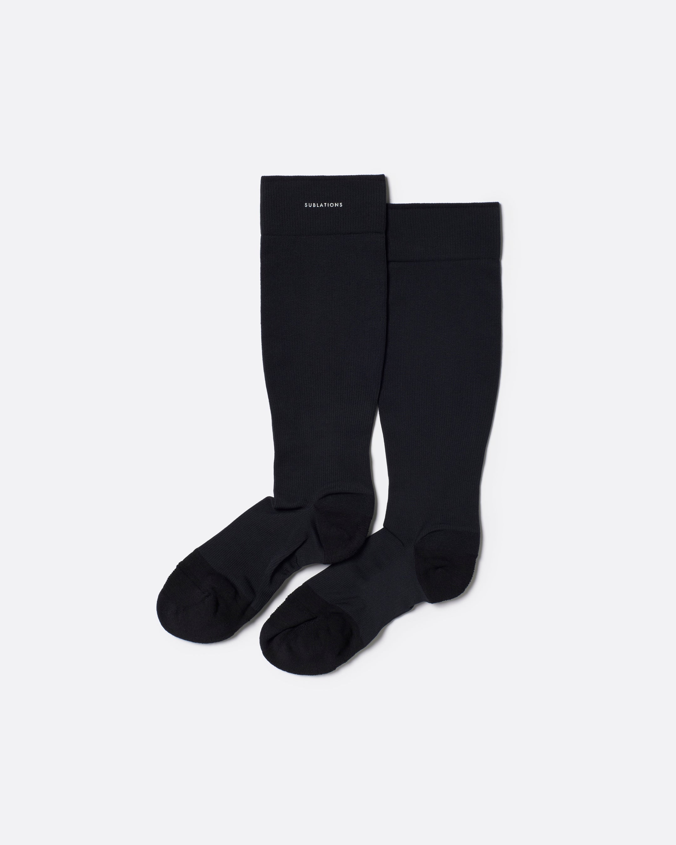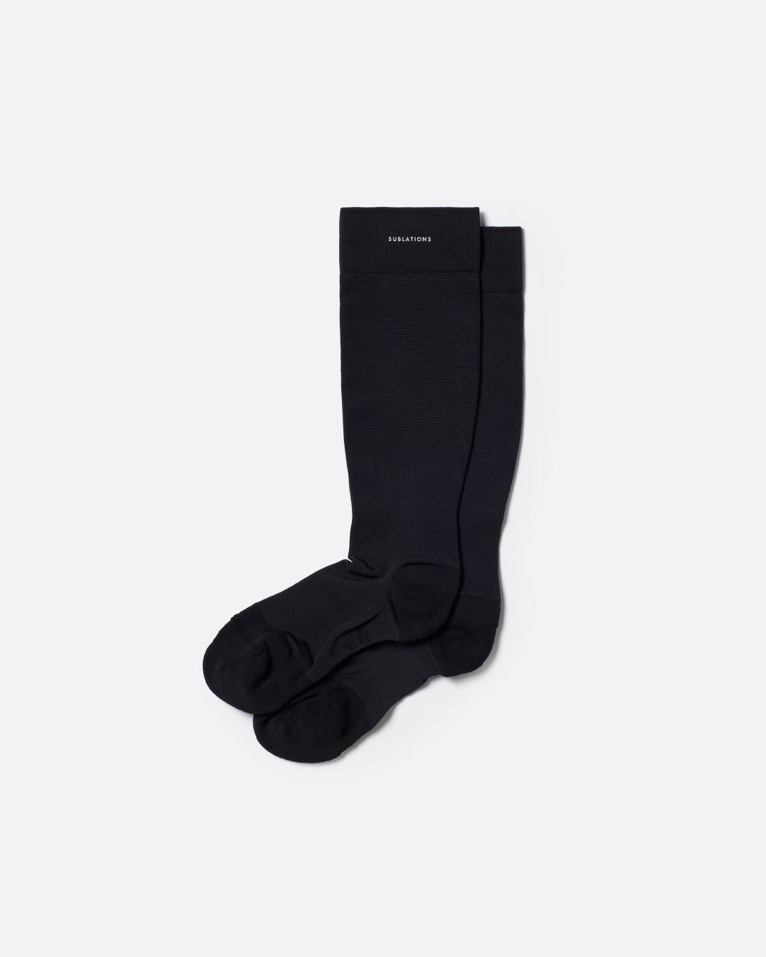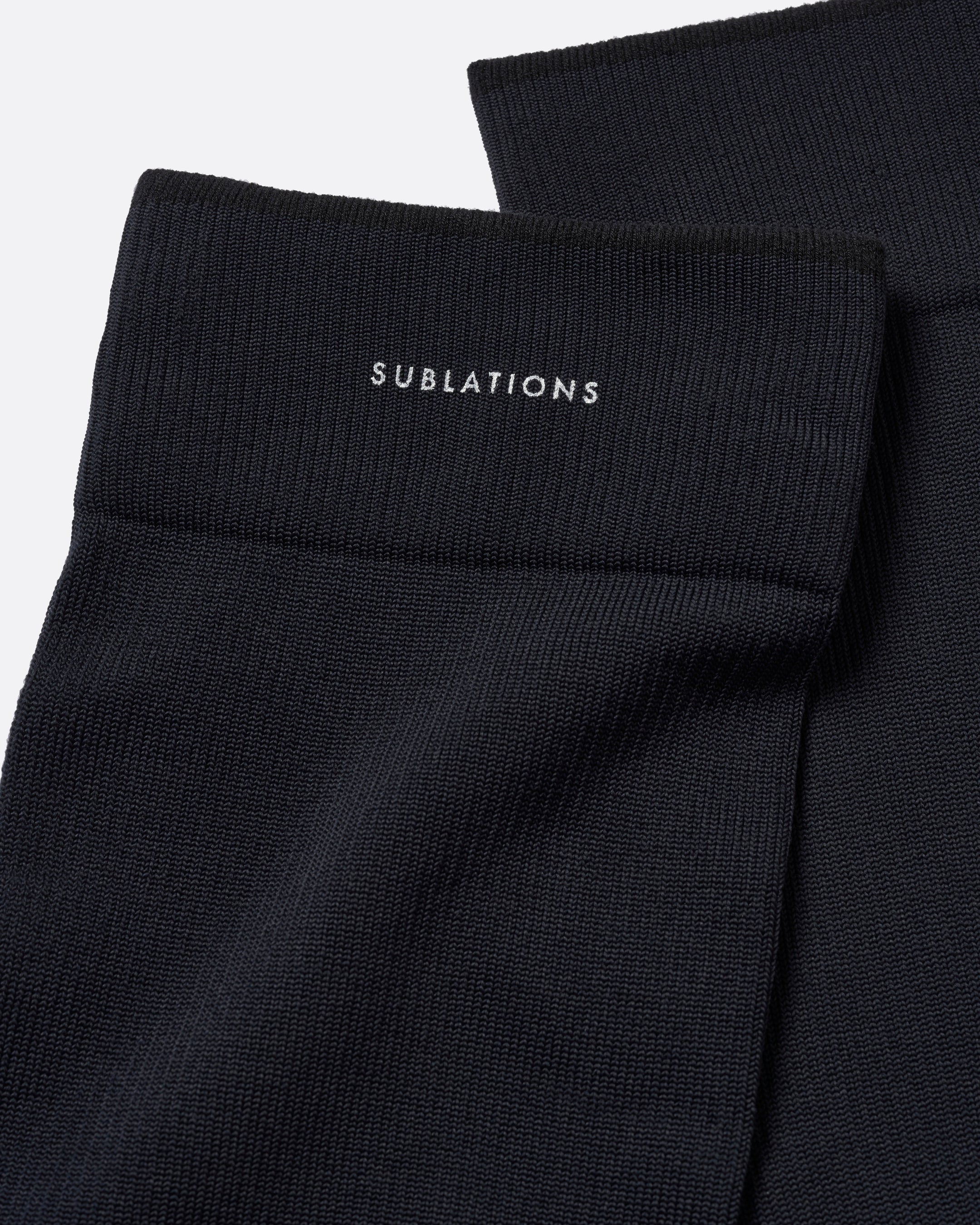 SUBLATIONSディレクターの金山も愛用するハイソックスに、さりげなくロゴを配したソックス。