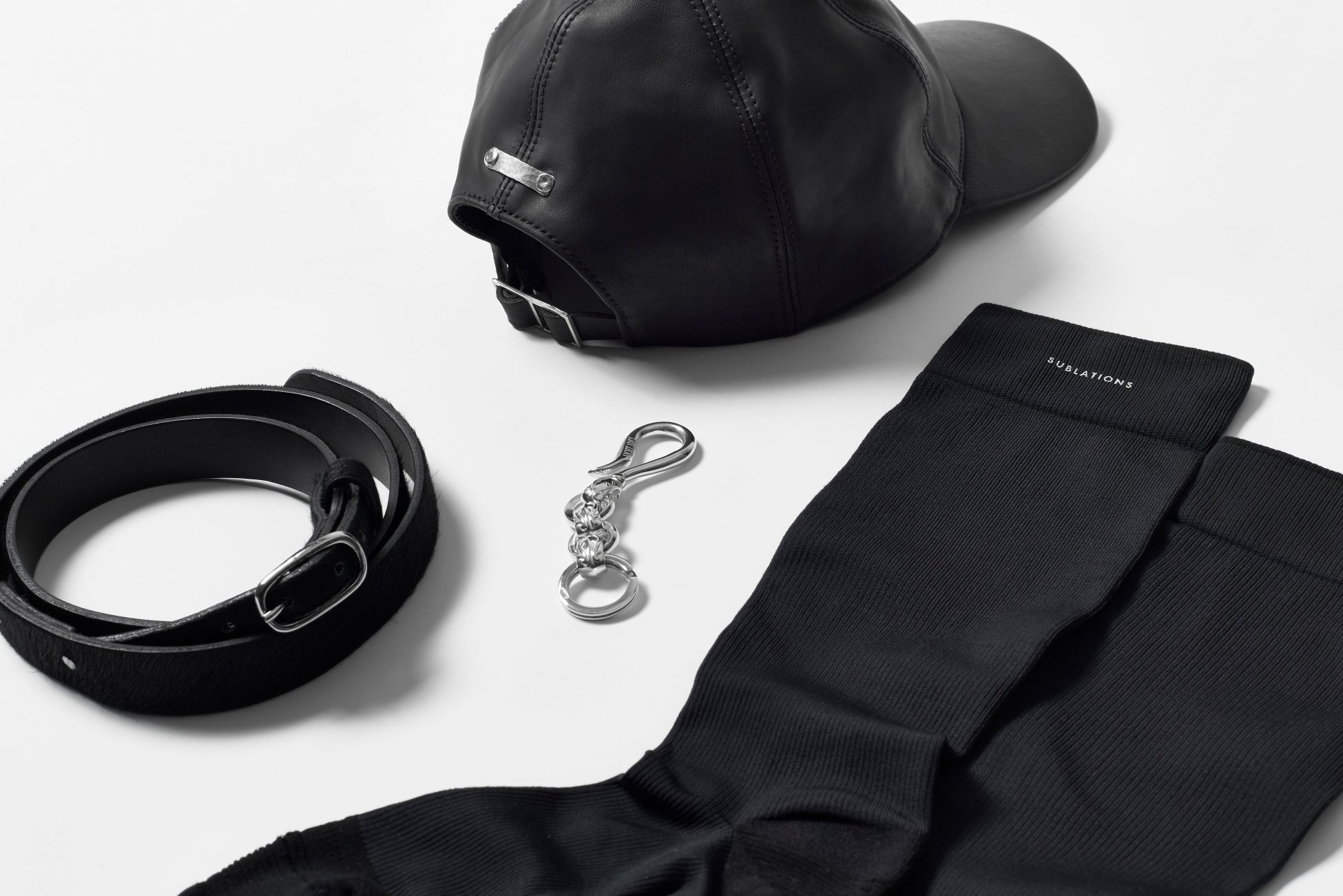 「texnh(テクネ)」からは、工業製品であるベルトにフォーカスを当てたシグネチャーベルトの素材別注となるベルト、「Tabio MEN(タビオメン)」、「prasthana(プラスターナ)」からは、ディレクターの金山が日々愛用を重ねているアイテム2型をリリース。「LICHT ADEL(リヒトアディル)」からは、ブランドが誇るピースに一味加えたキーチェーンをローンチ。