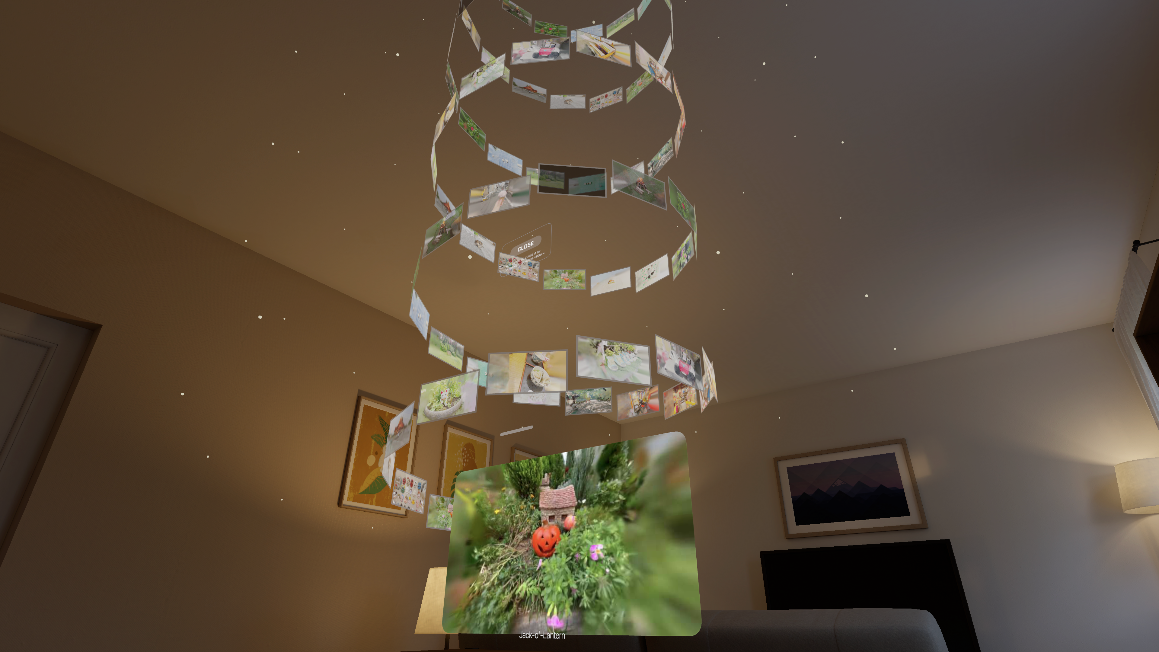 ハンドジェスチャーで配置を操作し、思い出を探索する体験が可能です。