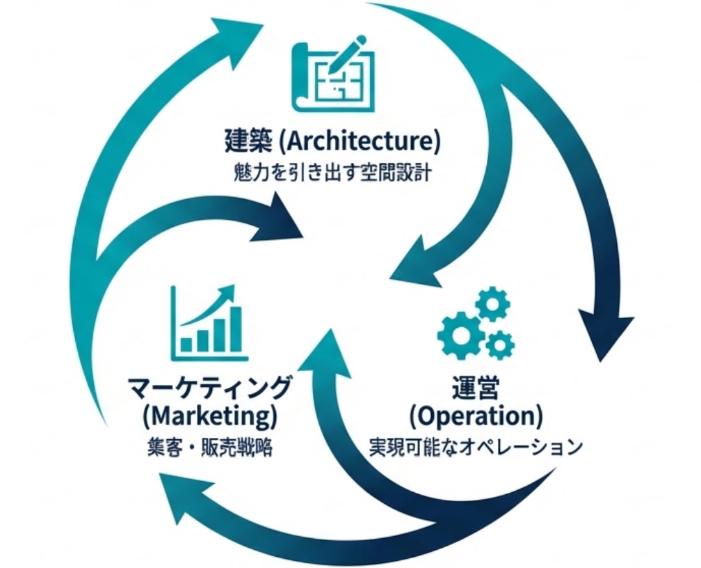 建築×運営×マーケティングという要素から「この場所で誰のどんな体験を生み出すか」をゼロから設計し、既存の型にはまらない、その場所だけの価値を最大化します。