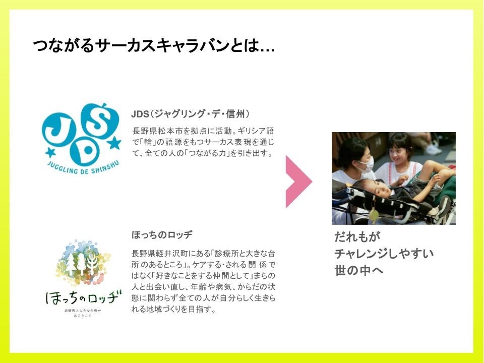 「医療法人社団オレンジ 診療所と大きな台所があるところ ほっちのロッヂ」(所在地:長野県軽井沢町、共同代表:紅谷浩之・藤岡聡子、以下ほっちのロッヂ)は、長野県在住のサーカスアーティスト・金井ケイスケ氏の主宰するJDS(ジャグリング・デ・信州 所在地:長野県松本市)と協働し、「つながるサーカスキャラバン2025-26」を実施します。