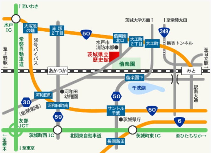 車 で お 越 し の 方【高速道路インターチェンジ・水戸駅から】