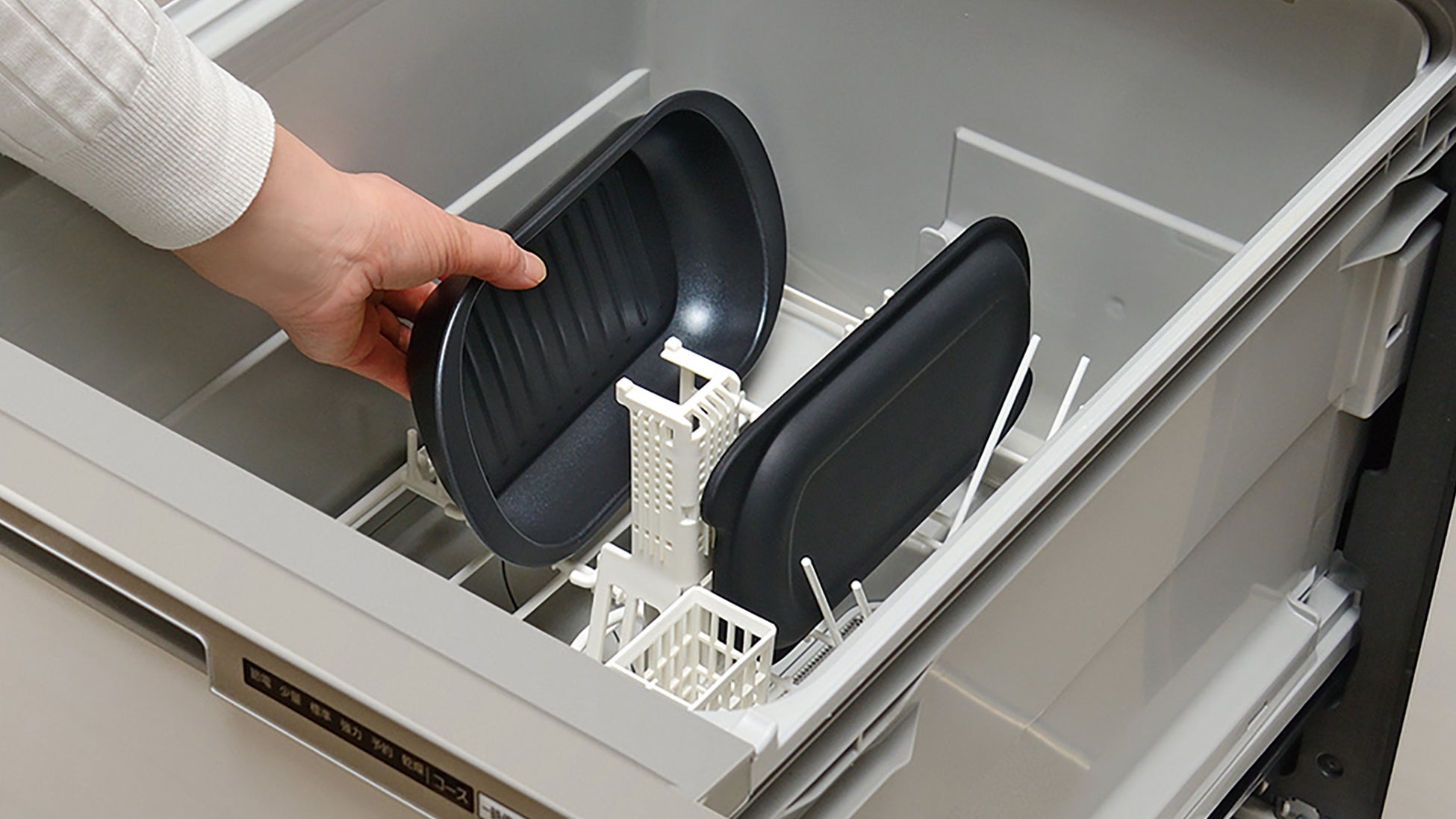 内面はふっ素樹脂加工でこびりつきにくく、食洗機対応です。