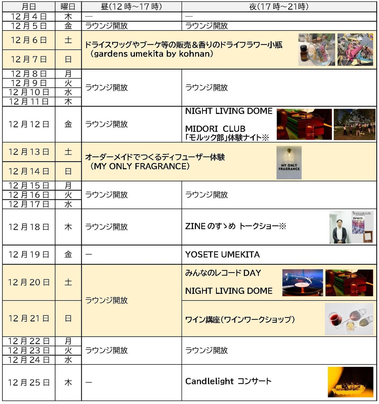 ※日によってラウンジ開放時間は異なります。初日12月4日(木)の一般開放はございません。