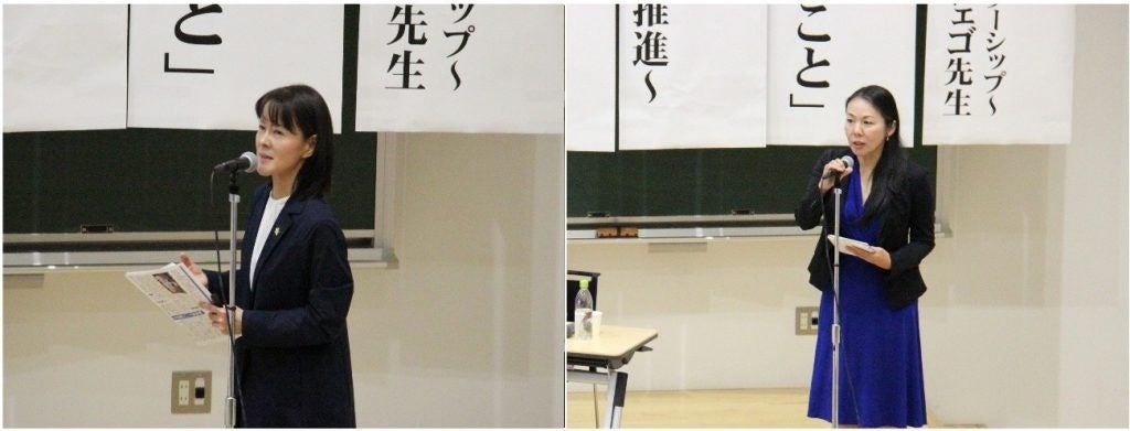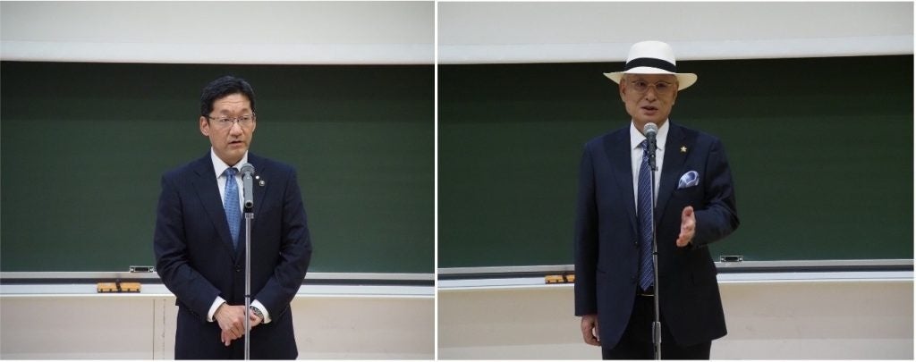 シンポジウムでは、CIFALジャパン共同代表の内田広之いわき市長が開会あいさつ、同じく共同代表の緑川浩司学校法人昌平黌理事長が閉会のあいさつを行い、CIFALジャパン設立の意義と今後の展望、参加者・来場者へのお礼の言葉を述べました(緑川理事長はガジェゴ議長から贈られた帽子をかぶり、あいさつしました)。