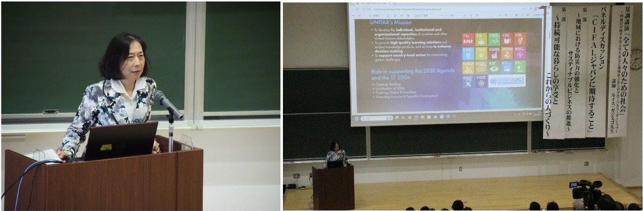 続いて、伊東亜紀子CIFALジャパン事務局長(東日本国際大学客員教授、大阪大学招へい教授、元国連経済社会局障害者権利条約事務局長)がCIFALジャパンの活動方針等説明しました。