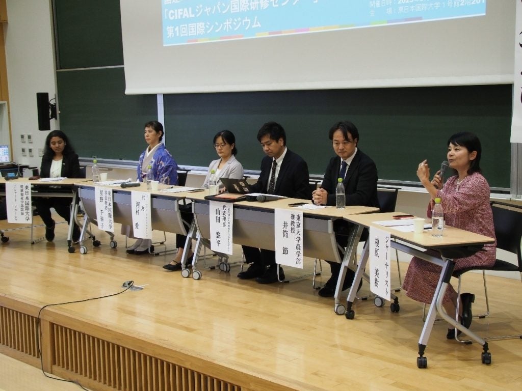 コーディネーターをジャーナリストの榎原美樹元NHK記者(キャスター)が務め、パネリストは井筒節東京大学農学部准教授、河村愛Nature Inclusive代表、星野千華子東日本国際大学客員教授、山田悠平一般社団法人 精神障害当事者会ポルケ代表理事、ニシャート アニーシャ東日本国際大学健康福祉学部講師、コメンテーターとして田中みわ子(東日本国際大学健康福祉学部学部長・教授)、菅波香織CIFALジャパン理事(いわき法律事務所弁護士)が登壇しました。