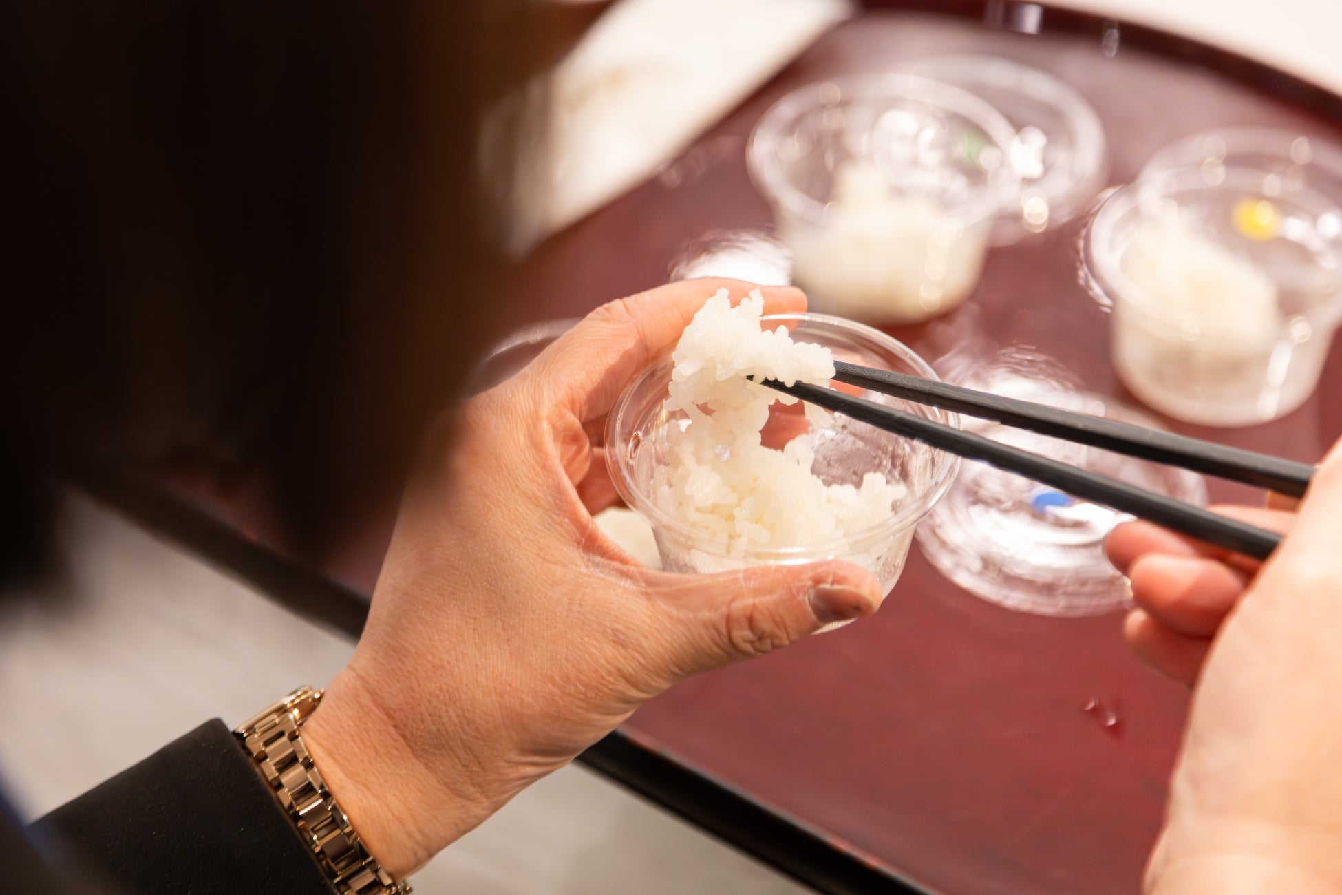 食味計((株)サタケ製、RLTA10C1)により食味値を測定し、上位8点を選定。さらに、食味値上位8点を味度メーター(東洋ライス(株)製、MA―90R2)により味度値を測定。
