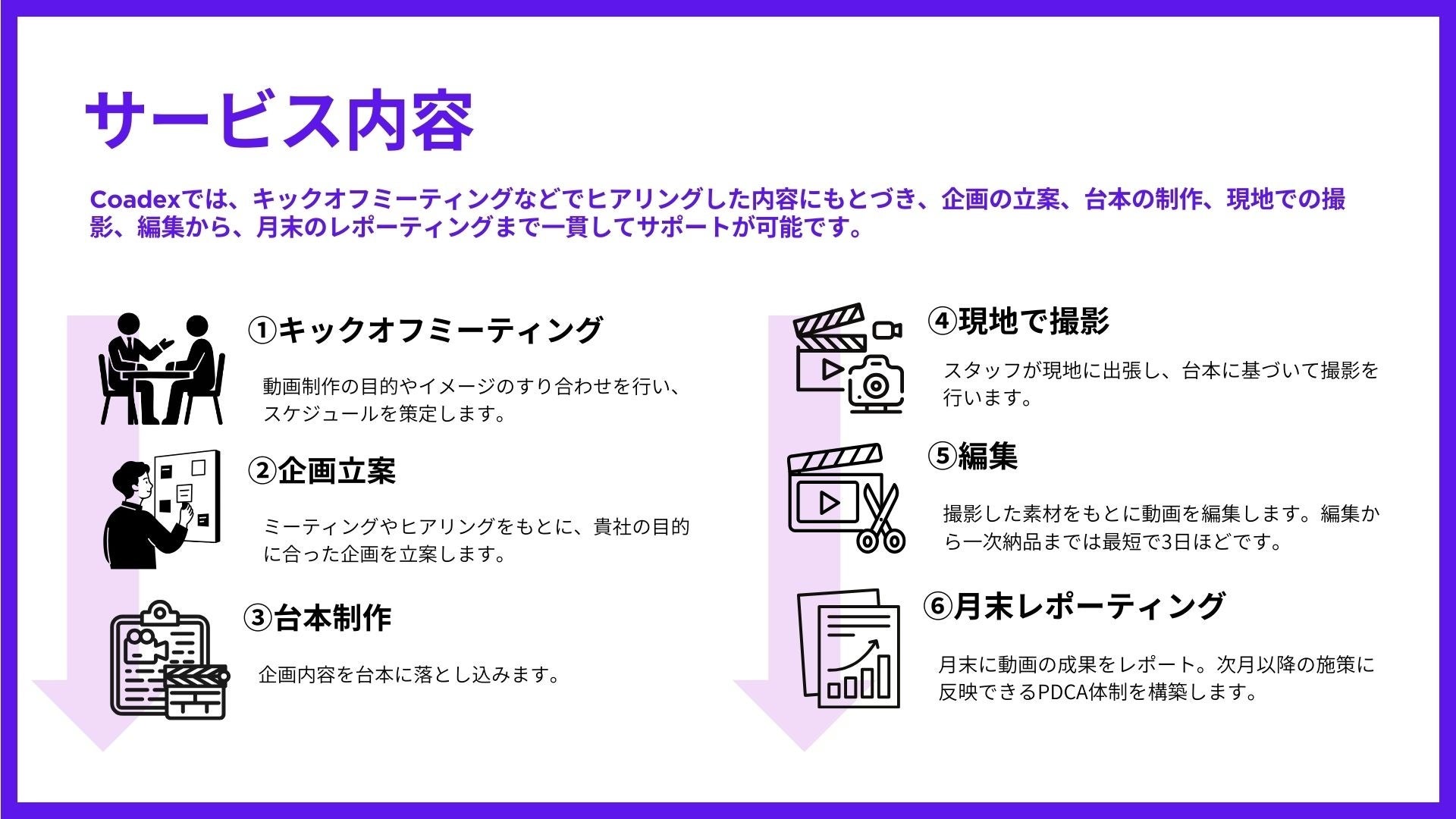 Coadexは、今回のショート動画プランの提供を通じて、お客様のご要望を反映しやすいサービス推進してまいります。お客様にとってさらに価値あるサービスを提供するための取り組みを続けてまいります。