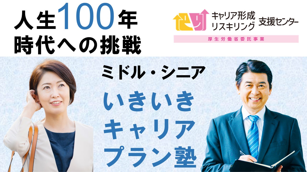 その中、キャリア形成・リスキリング推進事業では、全国47都道府県に設定しているキャリア形成・リスキリング支援センターにて、中高齢者にセカンドキャリアの支援として、「ミドル・シニア向け いきいきキャリアプラン塾」を実施します。