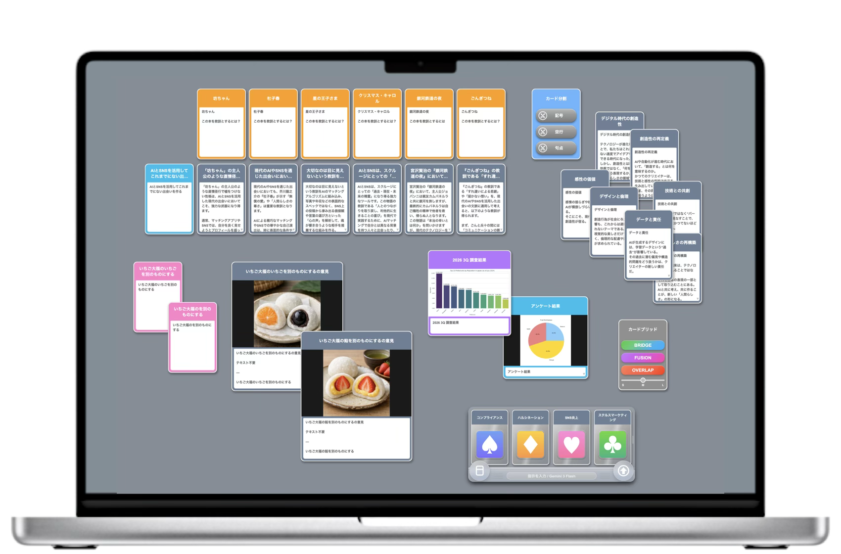 『カードコマンド』は特定業務に「特化しすぎない」設計となっており、業務の型に応じて柔軟にカードを組み換えることができます。AIの進化が激しい時代に、常に最前線の使い方ができる、まったく新しいコンセプトのツールです。(特許取得済み。追加特許出願中)