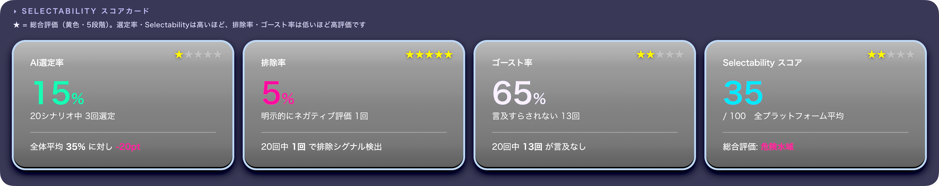 - Selectabilityスコア: AI時代の総合認知力を示す統合指標