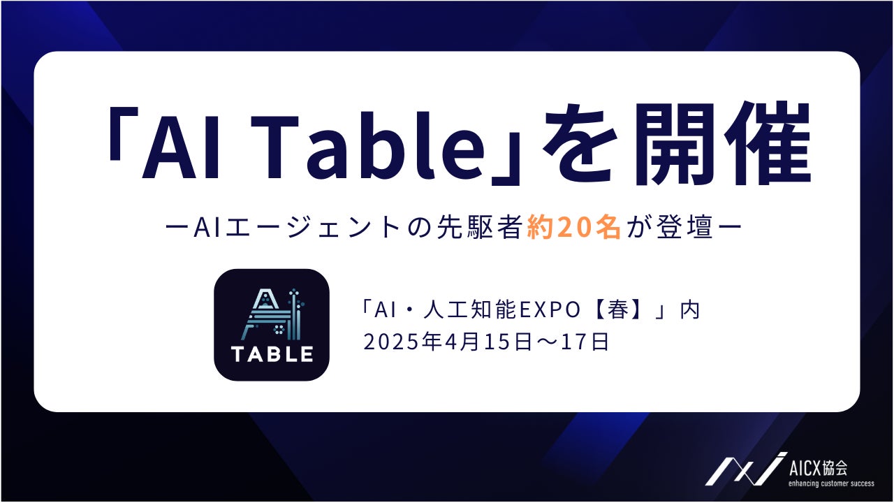 生成AI技術を活用したAIエージェントによる社会実装を推進し、顧客体験(CX)の変革を目指す一般社団法人AICX(AI Customer Experience)協会(東京都、代表理事:小栗伸、小澤健祐、以下、AICX協会)は、2025年4月15日(火)~17日(木)に東京ビッグサイトで開催される「AI・人工知能EXPO【春】」内にて、特別企画「AI Table」を主催いたします。