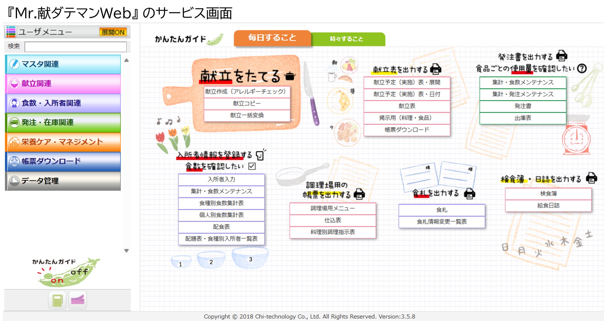 ◆ クラウド型 栄養・給食管理ソフト『Mr.献ダテマンWeb』について