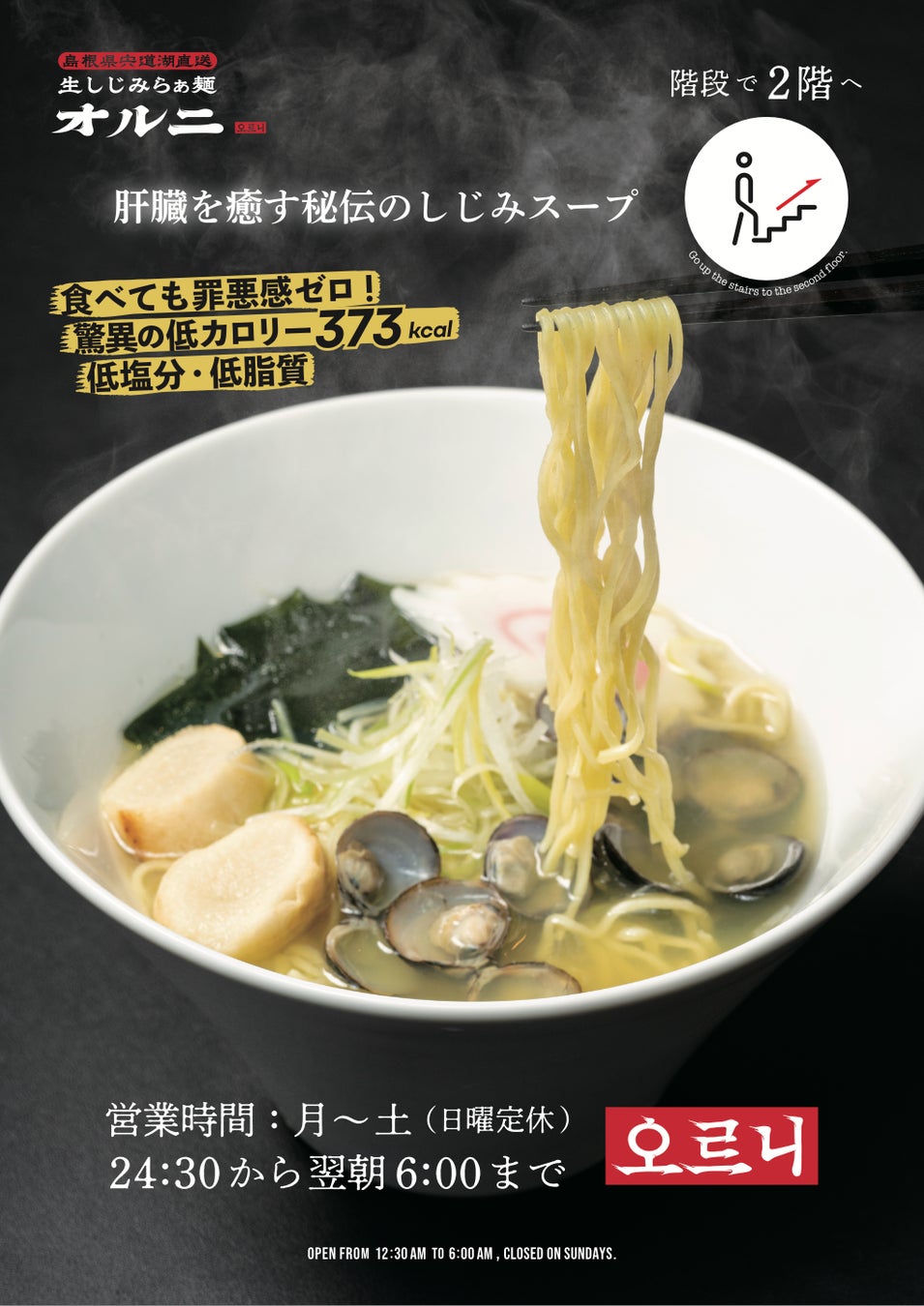 生しじみラーメン『オルニ』、新POPを公開──“罪悪感ゼロ”を伝える驚異の373kcalラーメンとは?