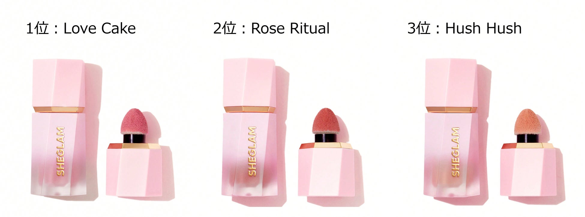 2021年より販売を開始し、世界中で愛されている本商品は、季節ごとにメイクを楽しめる新色を多く登場させてきました。キュートな見た目はもちろん、ワンランク上の仕上がりに見せるカラーやテクスチャー、そしてスポンジチップのアプリケーターによる軽やかな付け心地が支持され、どんな商品よりも圧倒的な販売数量を誇っています。特に、全15色のうち「Love Cake」「Rose Ritual」「Hush Hush」の3色が売上ランキングTOP3にランクインしており、「Love Cake」においては、シマータイプとマットタイプの累計売上本数が800万個突破を記録しています。